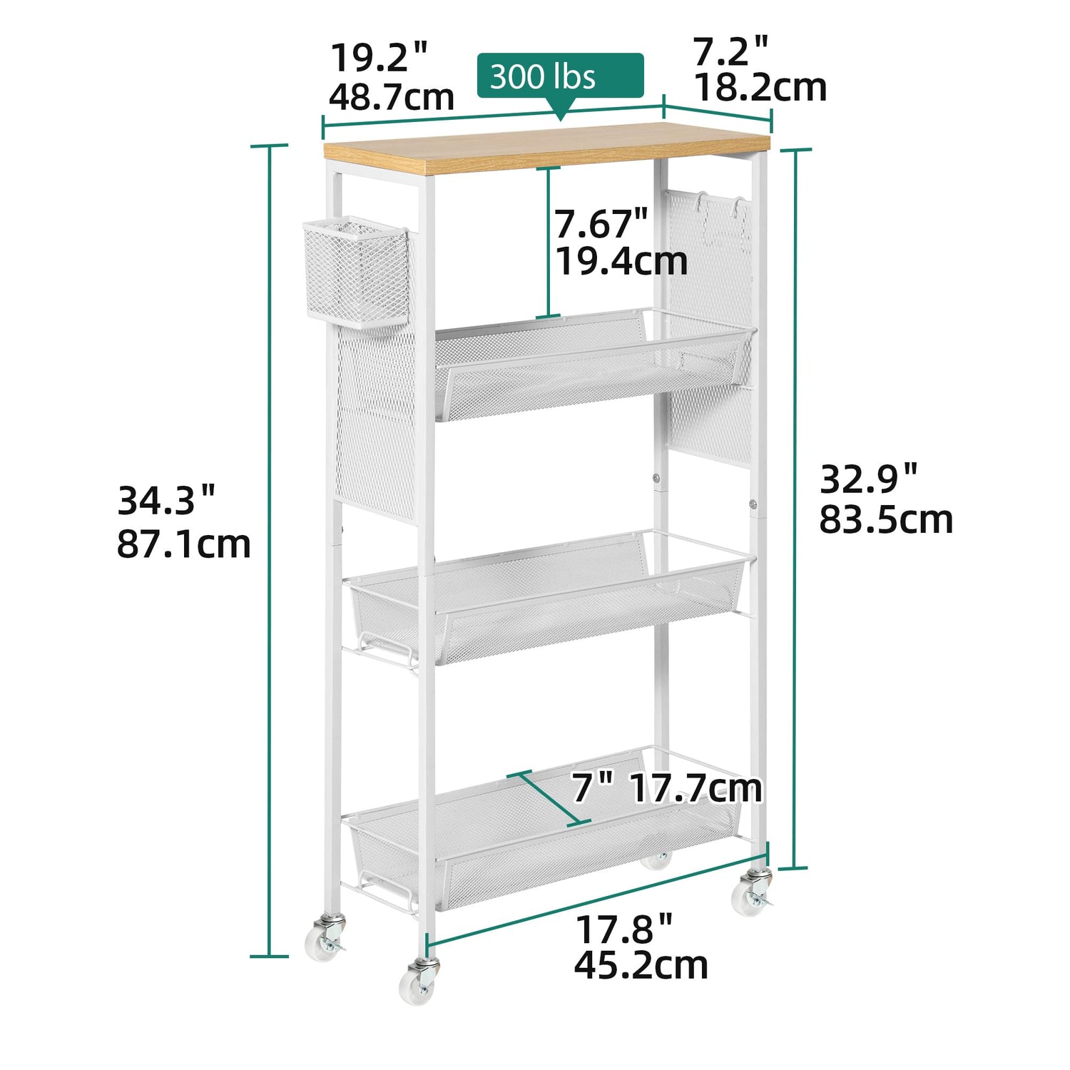 YITAHOME 4-Tier Slim Rolling Cart, Kitchen Cart with Wheels, Storage Cart with Wooden Tabletop and Mesh Baskets, Mobile Utility Cart for Narrow Space