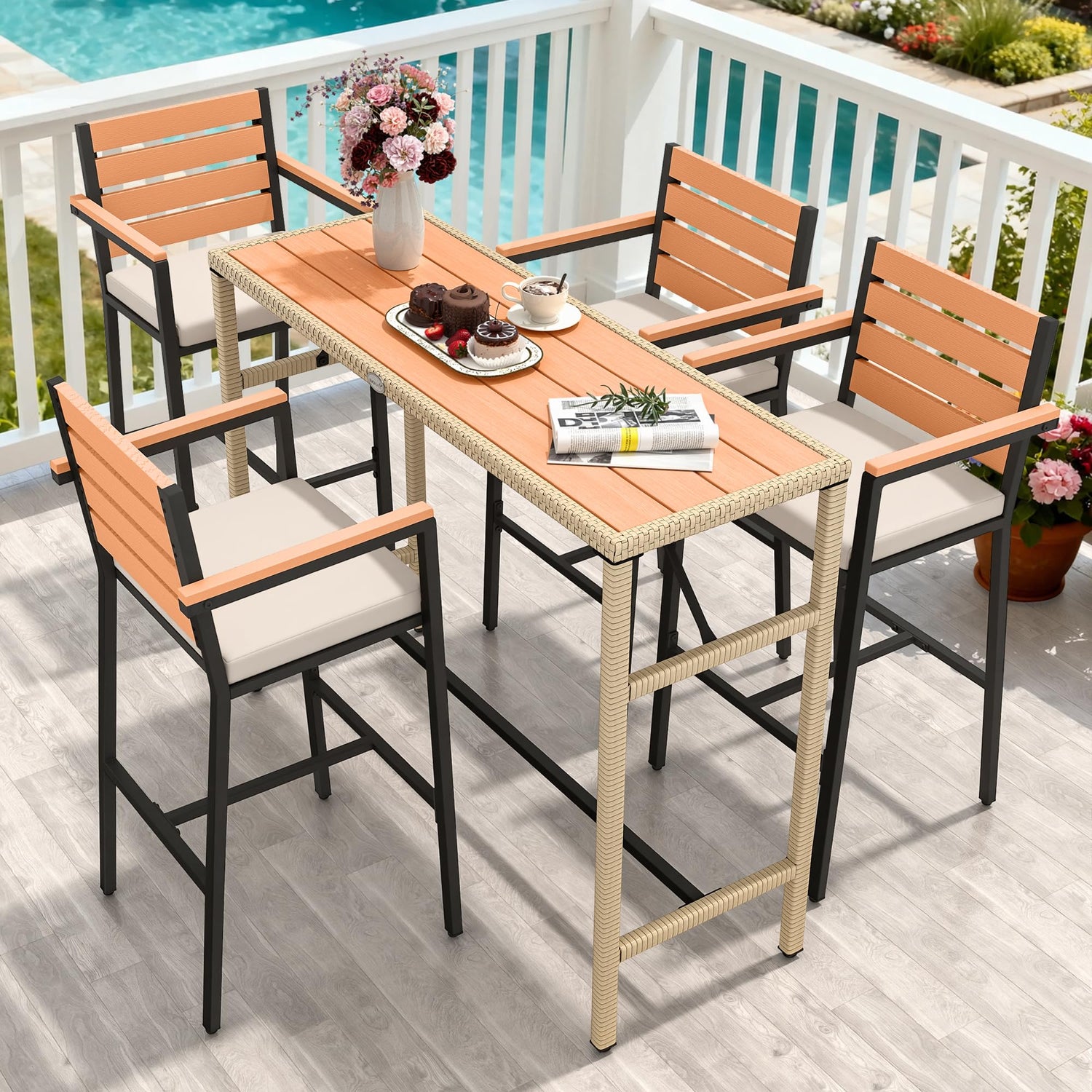 YITAHOME 5 Piece Patio Bar Set for 4 Outdoor High Top Dining Table and Chairs (with Arms, Cushions, Backrest) Bar Table and Chairs Set Outdoor Bar Set with Stool for Indoor/Outdoor