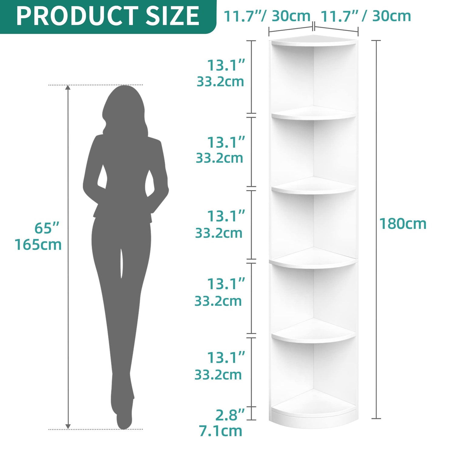 Introducing the YITAHOME 5-Tier White Corner Bookshelf, a modern and stylish free-standing display rack designed to enhance both your living room and home office. This multifunctional bookshelf is crafted to be both elegant and practical, making it the ideal solution for utilising those often-overlooked corners of your space.