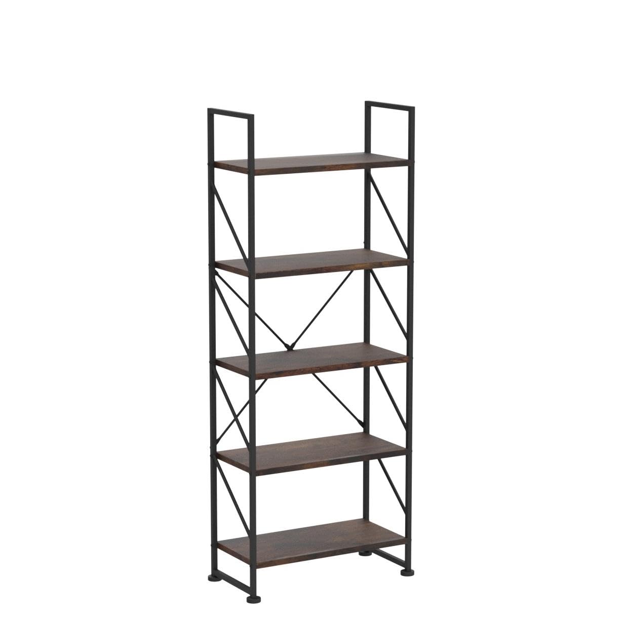 YITAHOME 5-Tier Rustic Brown Bookshelf - Stylish Modern Bookcase & Storage Rack for Home and Office