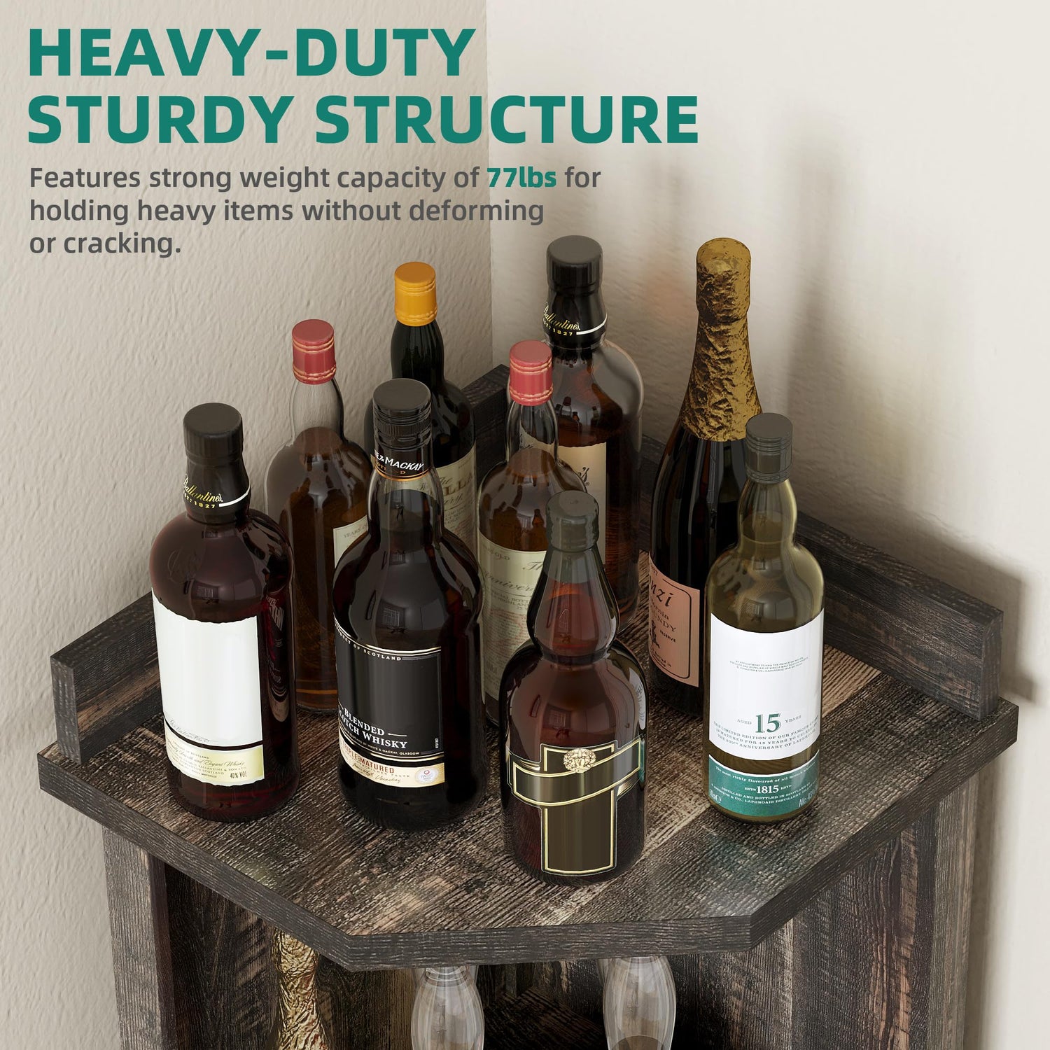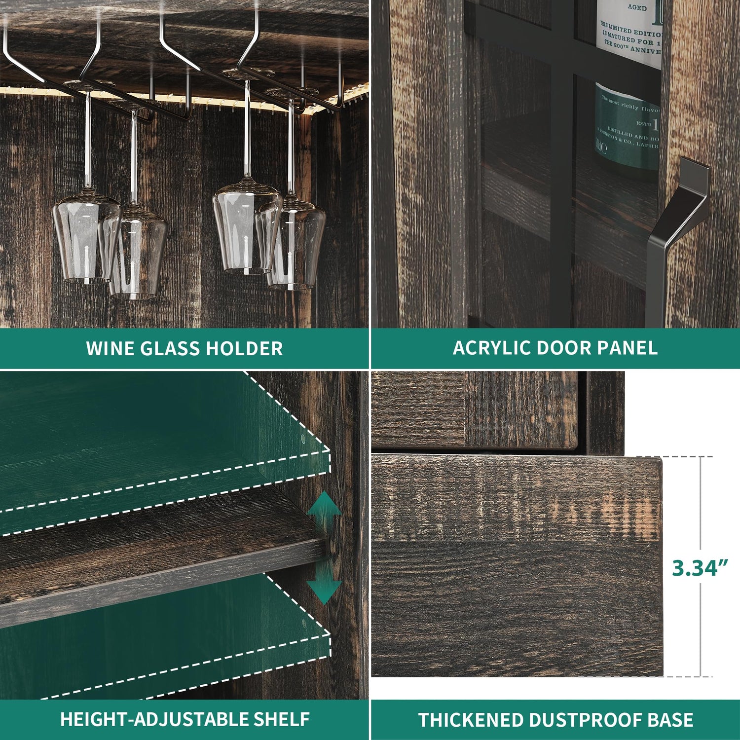 - Sturdy and Durable: This corner wine storage cabinet is made of strong engineered wood panels with a sturdy design that lasts and is durable. It has a thickened and dustproof 3.34-inch base for stability and support. The corner wine bar cabinet looks great and fits well in modern, contemporary, or traditional homes, adding elegance to your space.