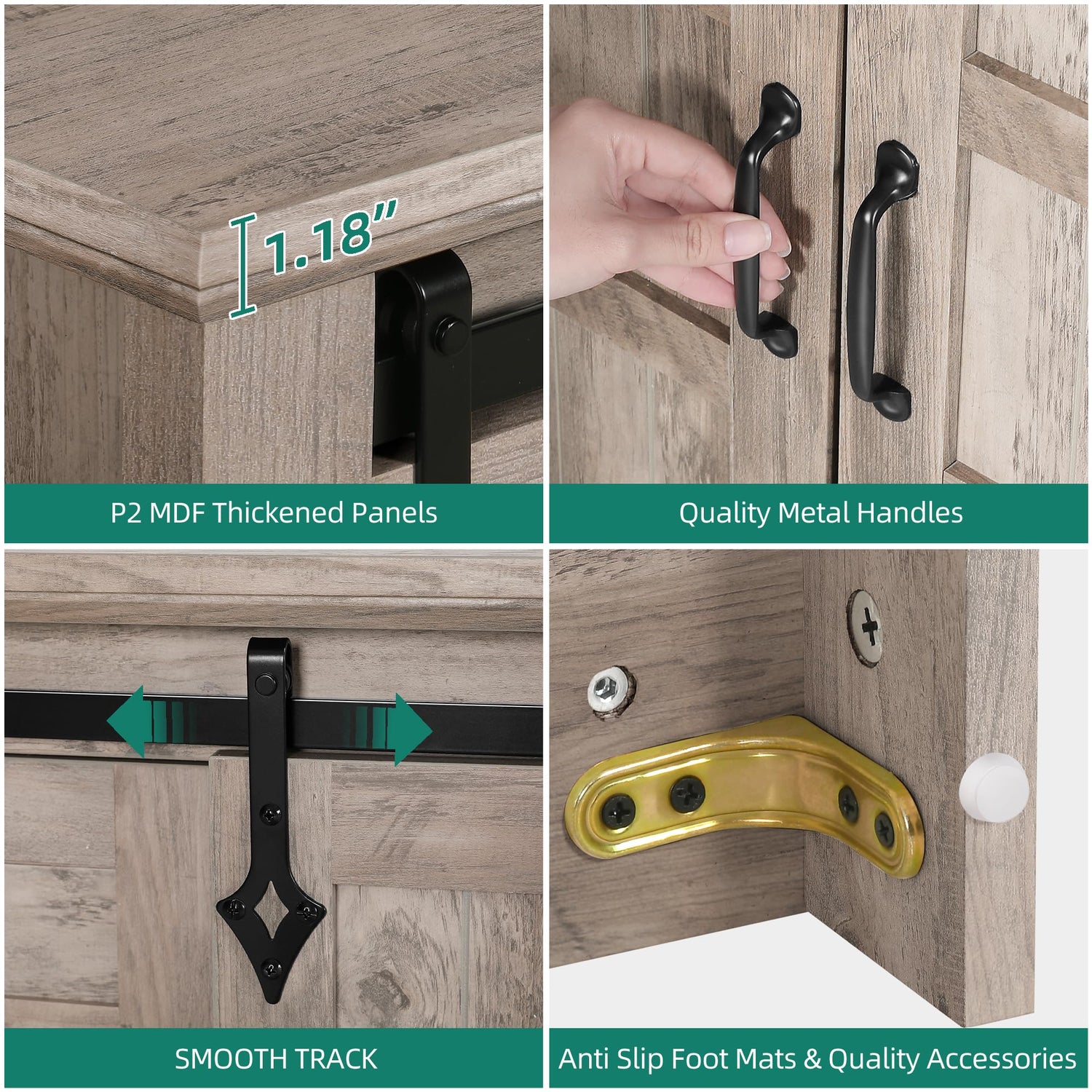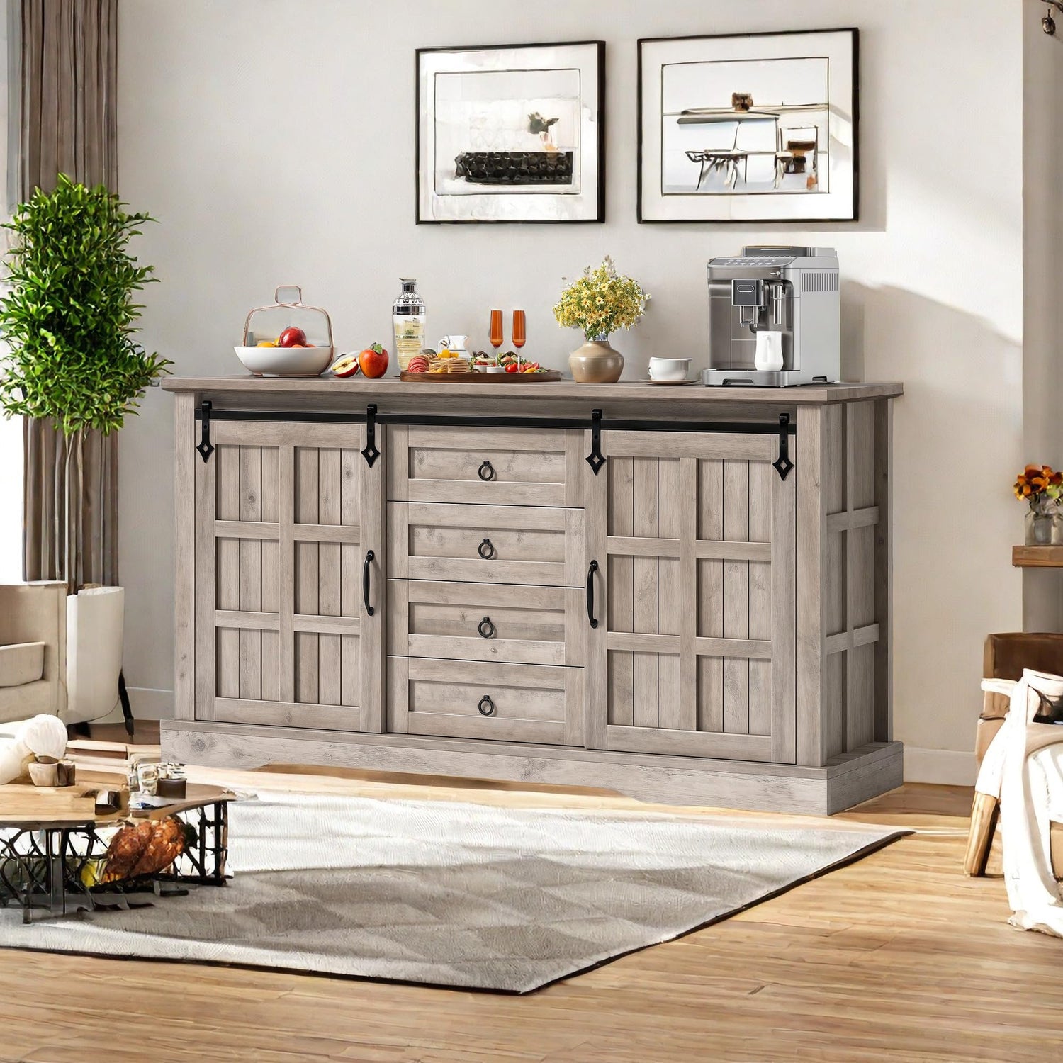 YITAHOME 59" Farmhouse Buffet Cabinet with Storage, Large Sideboard Cabinet w/Sliding Barn Doors and 4 Drawers for Living Room, Wash Grey