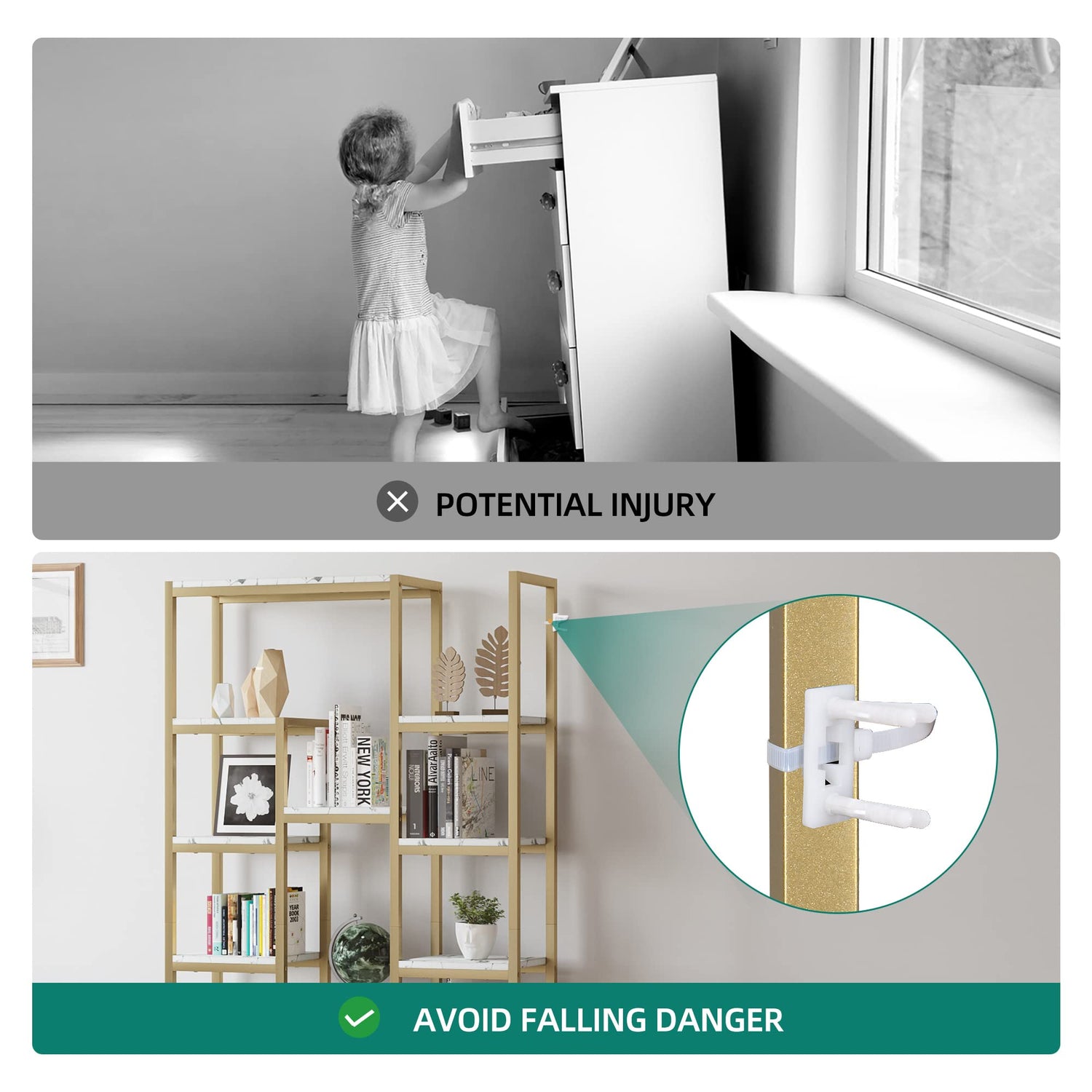 - Improved stability & safety: Two anti-tipping devices are included to secure the metal bookshelf to the wall to ensure personal and family safety. The adjustable feet pads at the bottom avoid scratching your floor