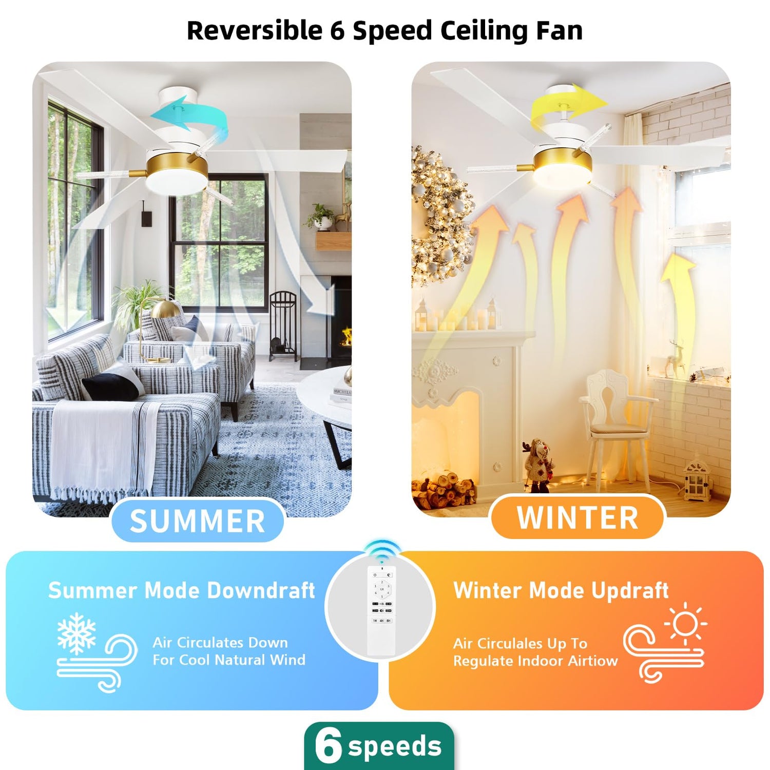 - Adjustable LED Lighting: Light up your life with our white gold ceiling fan's adjustable LED lights! Choose from a cozy warm glow (3000K), natural daylight (4500K), or cool white (6000K) to suit any mood or activity. The brightness of the indoor chandelier ceiling fan light can be adjusted from 0% to 100%, it creates an ideal ambiance for work, leisure, or parties