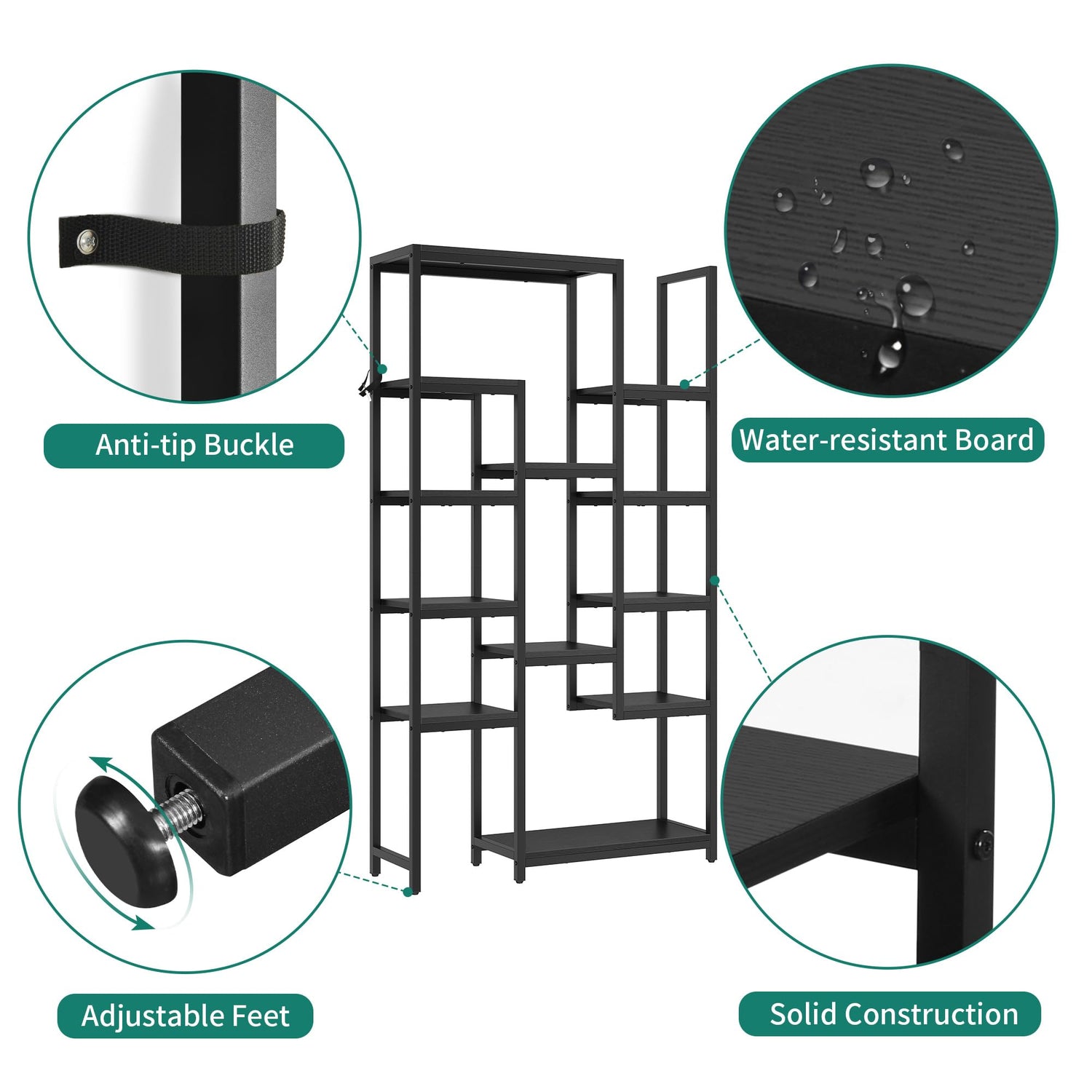 - Improved stability & safety: Two anti-tipping devices are included to secure the metal bookshelf to the wall to ensure personal and family safety. The adjustable feet pads at the bottom avoid scratching your floor