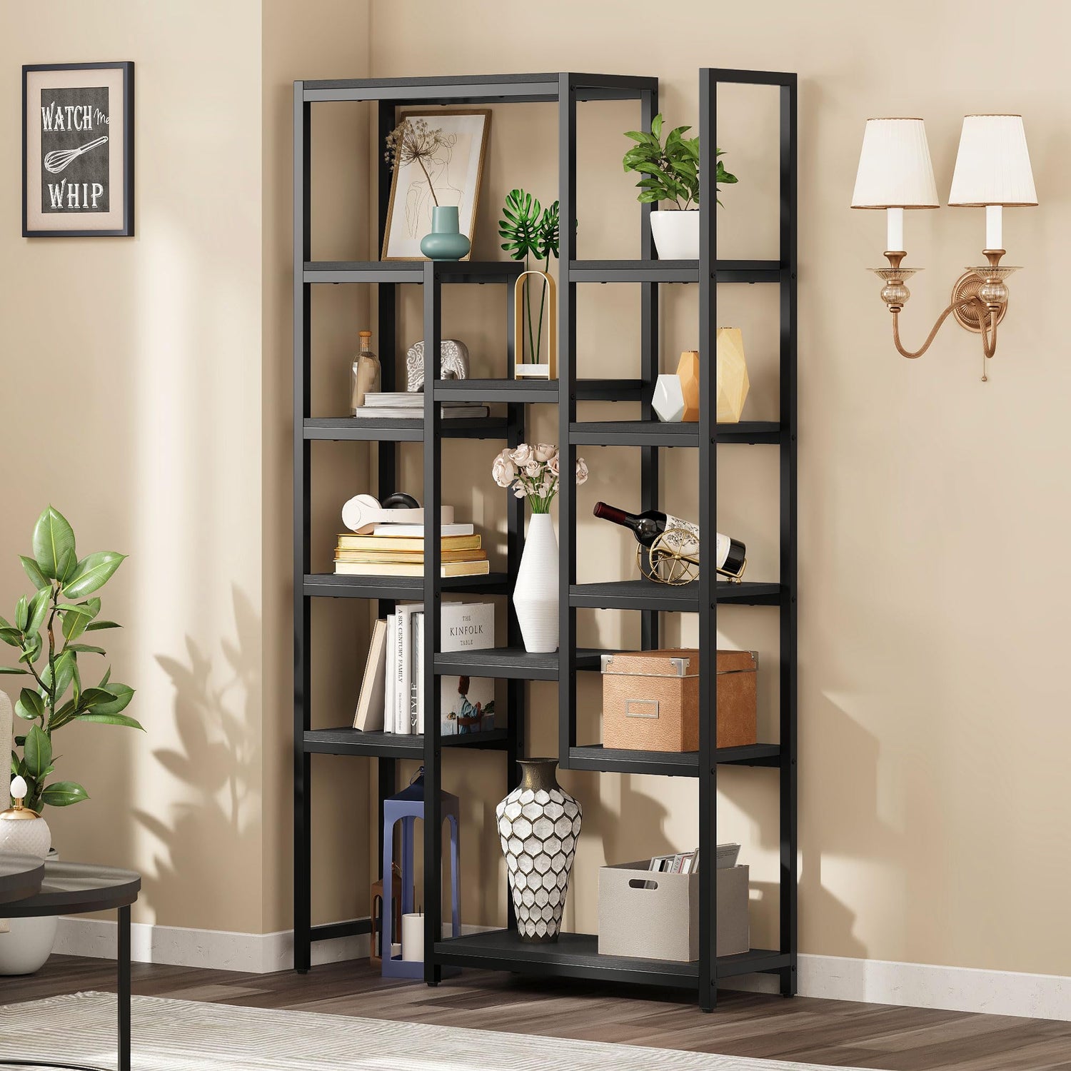 - Multi-purpose use: Not just suitable for storing your books, photo frame, ornaments, knickknack, etc, but also for functioning as a peerless room divider in living room or office to divide your living space. The black bookshelf is also a good choice to display plants in your patio, balcony, indoor garden, courtyards