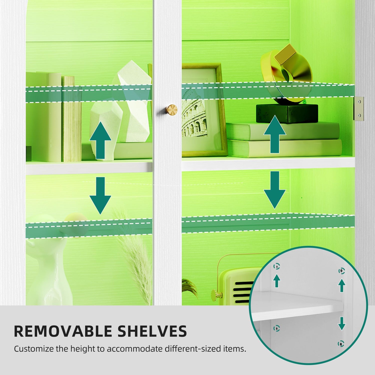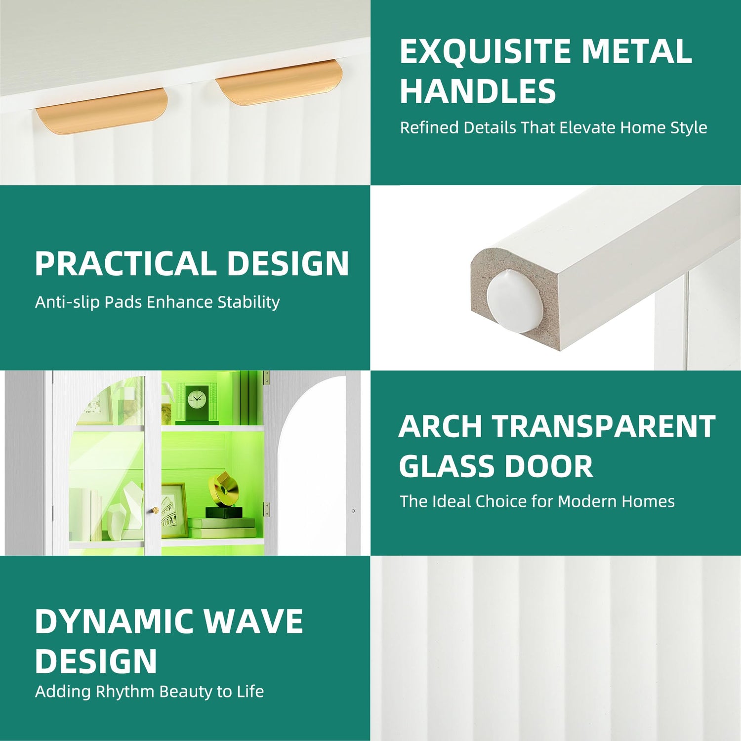 - Elegant & Functional Design: Featuring arched glass doors and fluted cabinet fronts, this modern white bookcase blends sophistication with practicality. Classic gold handles add a touch of luxury, great for showcasing decor or organizing your items