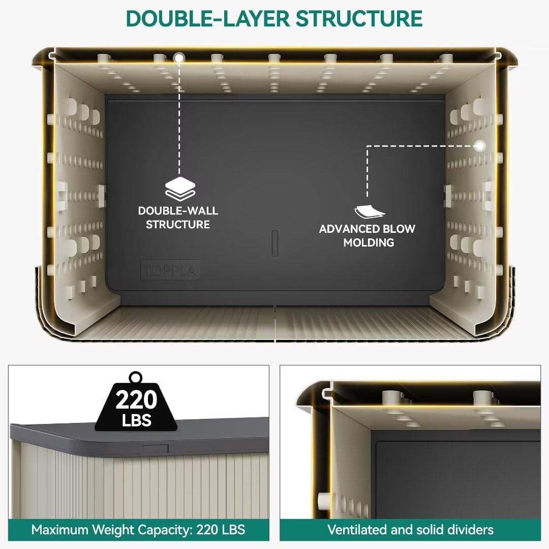 - Suitable for Multiple Applications: Storage cabinet’s double opening mobile sliding door design saves space, and its simple lines and neutral tones integrate well with any courtyard or terrace; The top of the box can serve as an additional seat for multiple people