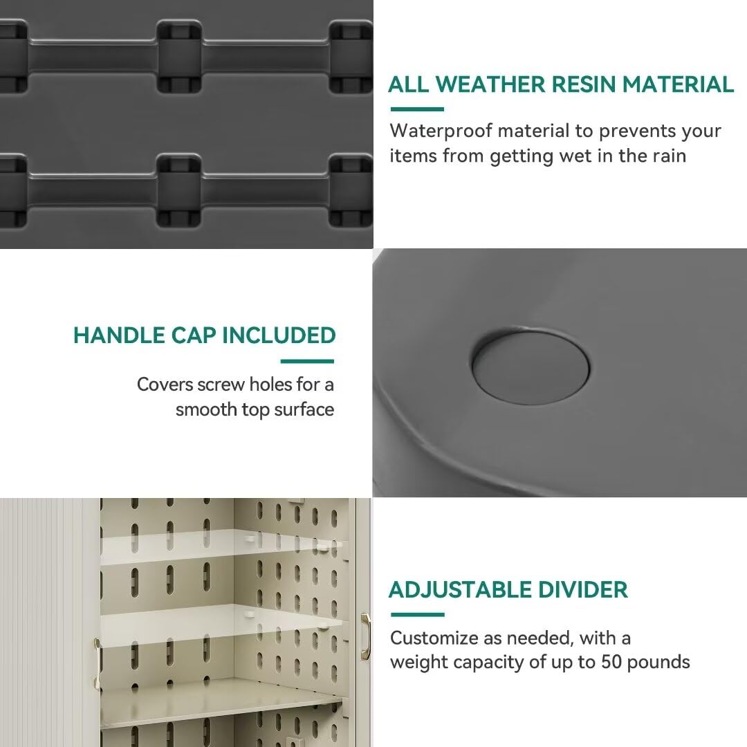 - Reinforced Shelves: Patio storage cabinet’s reinforced shelves can safely withstand a weight of up to 50 pounds per shelf and won’t bend even under heavy loads; Customize the positions for shelf installation as needed