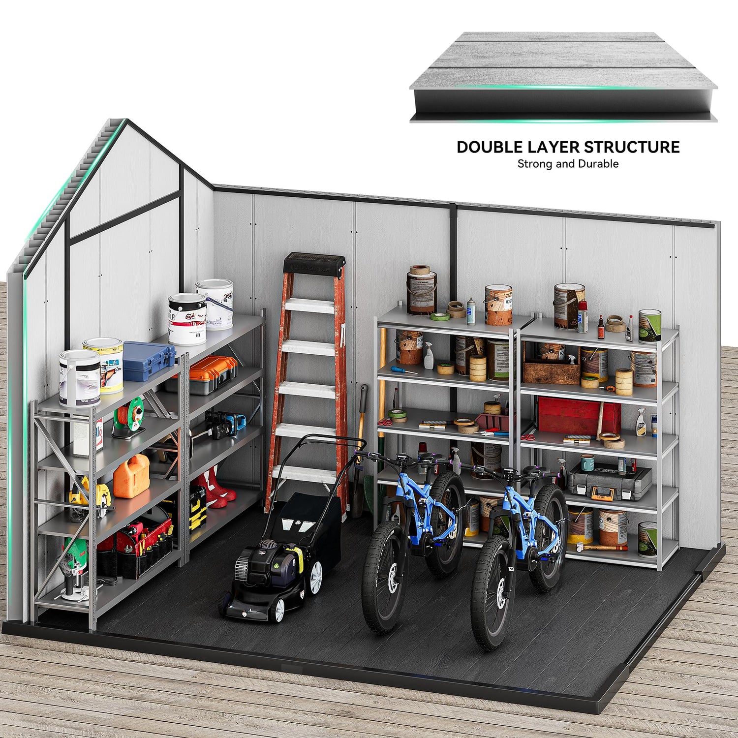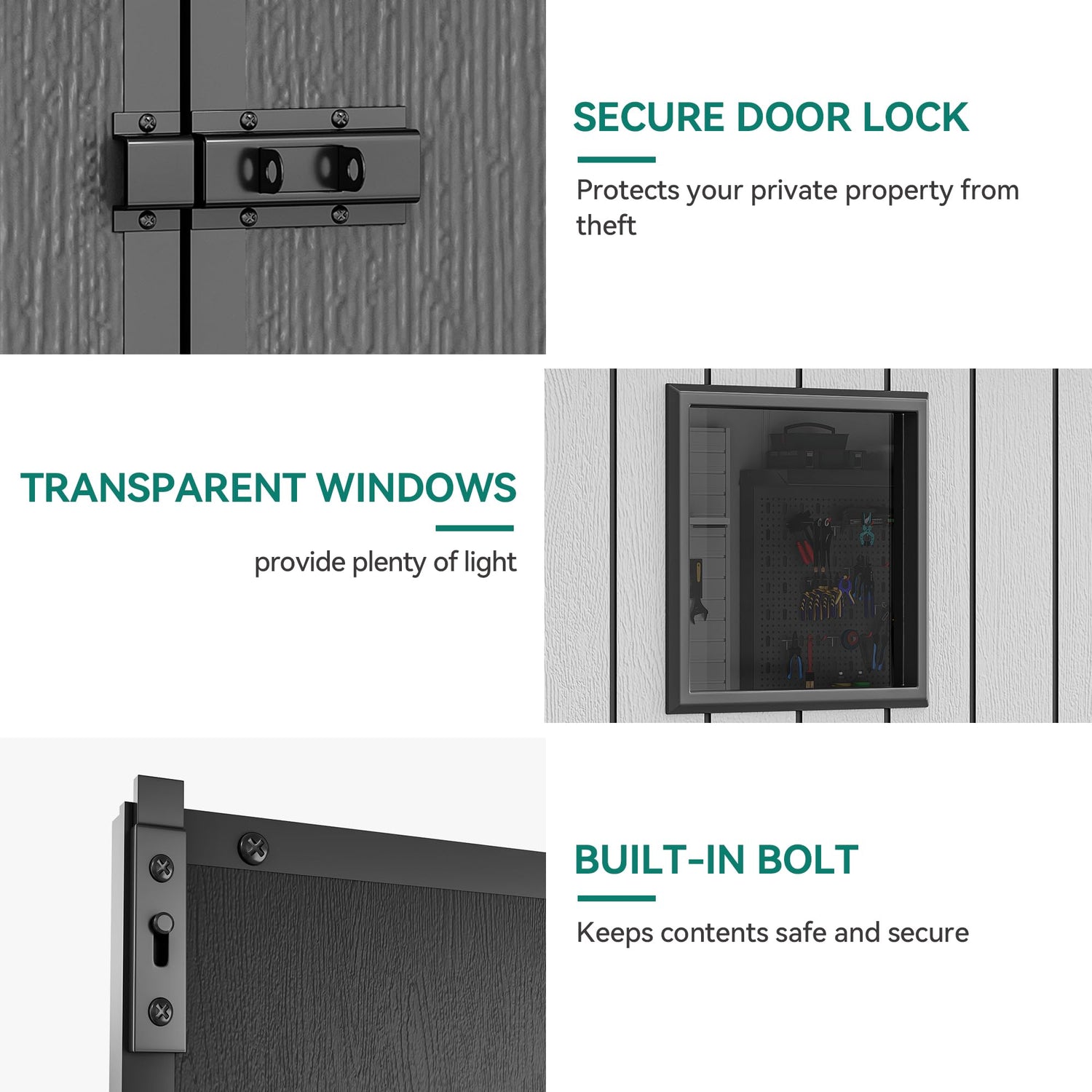 - Built Tough for Every Season: You head out after a downpour & open the outdoor storage shed, dry inside. The 16mm thick double-layer resin panels feel solid. No cracks, no flimsy spots, just thick double-layer resin holding strong through sun, snow, and sudden showers for years
