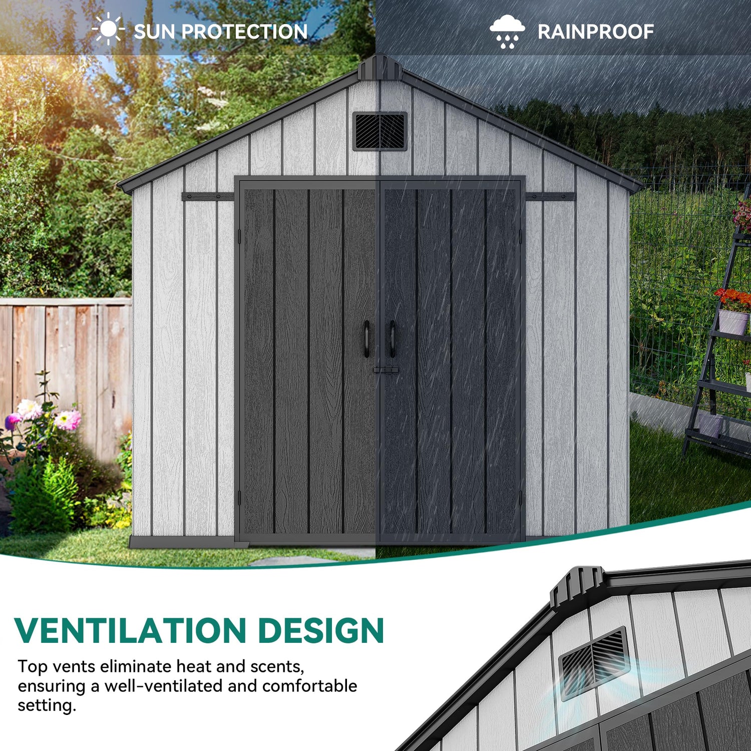 YITAHOME 8x10 FT Outdoor Storage Shed with Lockable Door, Large 544 Cuft Resin Shed with Floor Roof Windows Vents, All-Weather Plastic Storage Shed Tool Organizer for Backyard Garden Patio Lawn, Gray