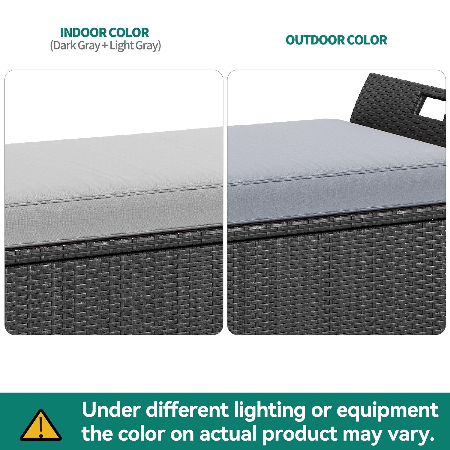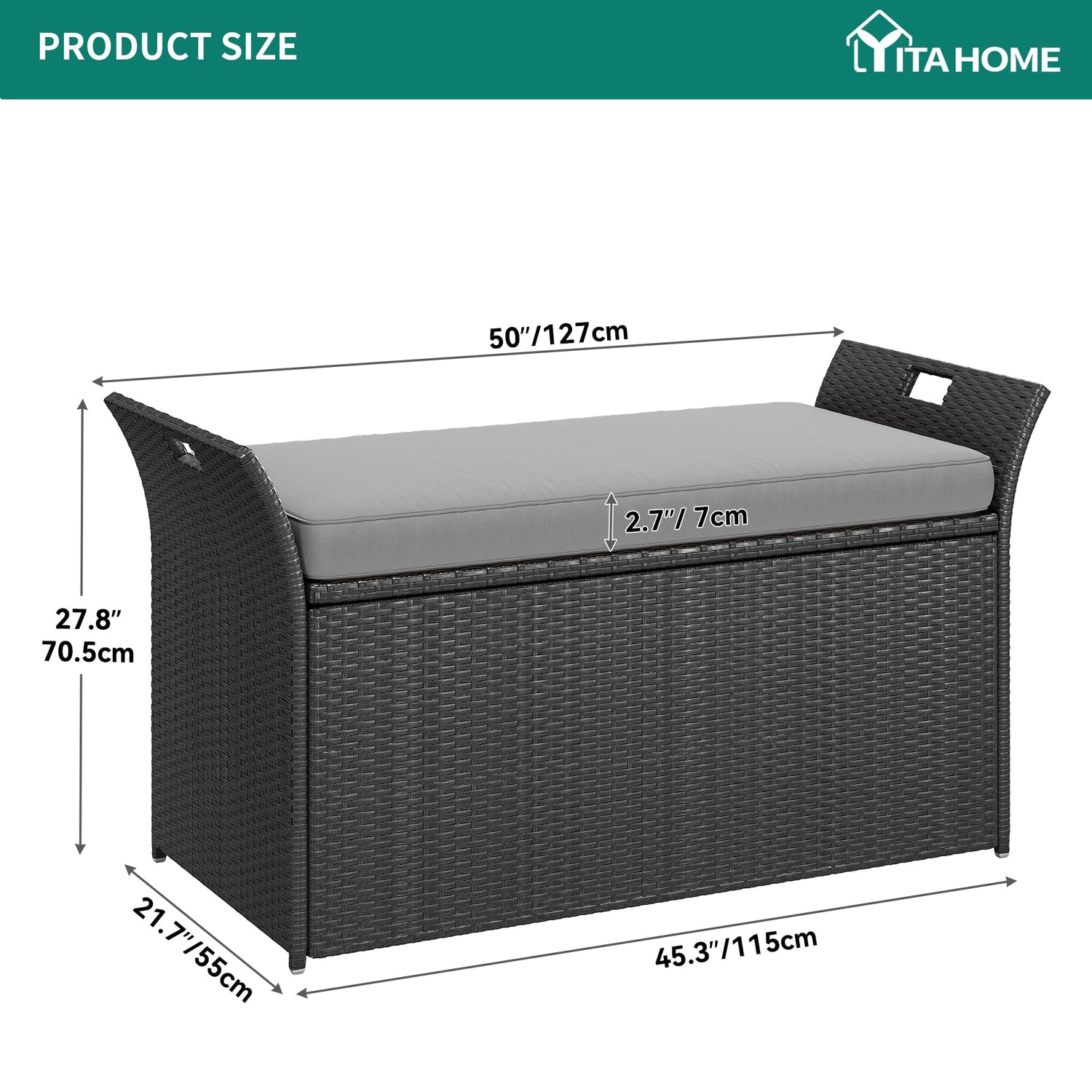 YITAHOME 90 Gallon Outdoor Wicker Storage Bench w/Cushion, Large PE Rattan Deck Storage Box w/Handles & Hydraulics for Patio Furniture, Cushions, Garden Tools, Pool & Sports Equipment, Black&Grey