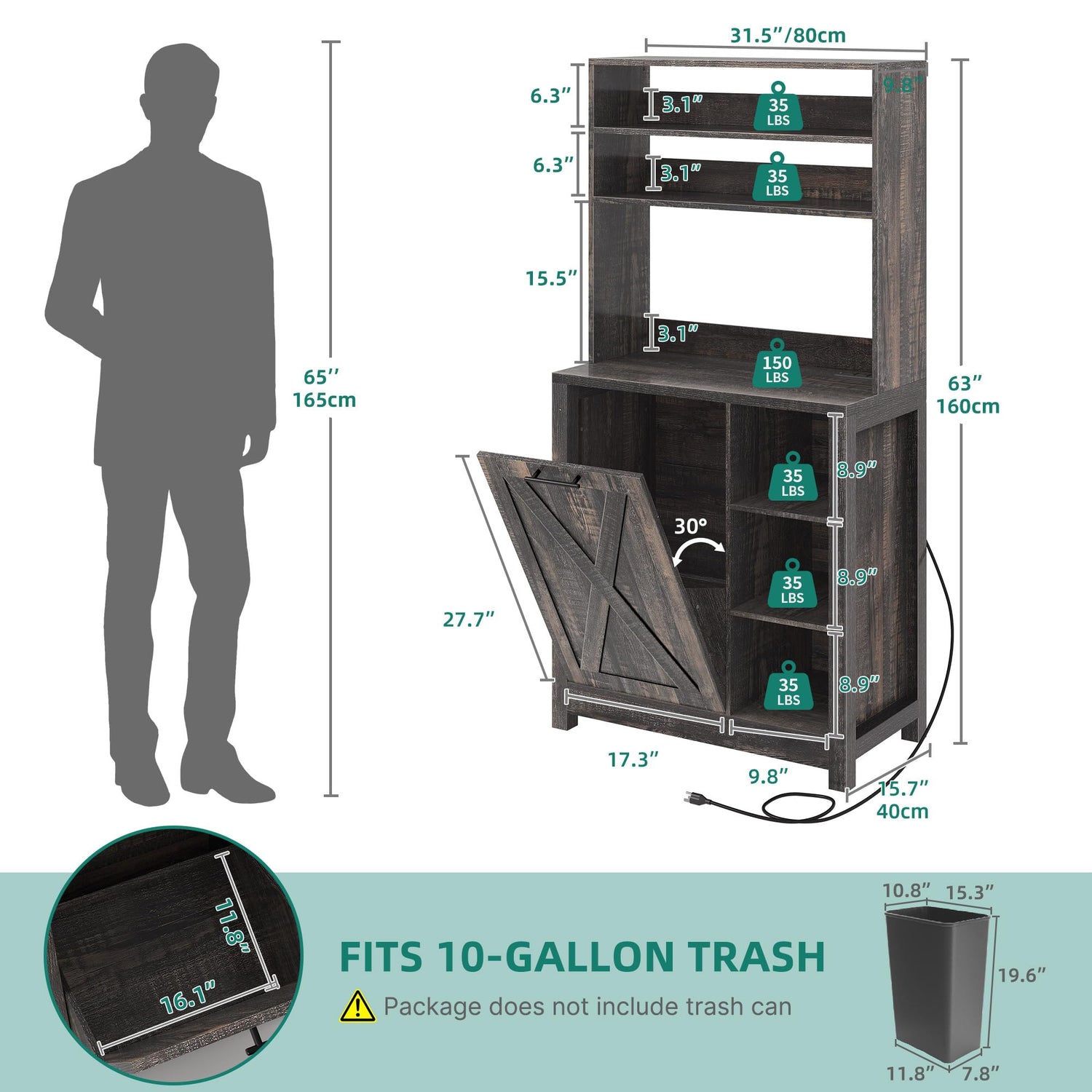 YITAHOME Bakers Rack Microwave Stand with Trash Can Storage Bin Cabinet and Power Outlet, 6-Tiers Farmhouse Kitchen Tall Thickened Coffee Bar Station with Adjustable Shelf (Rustic Oak)