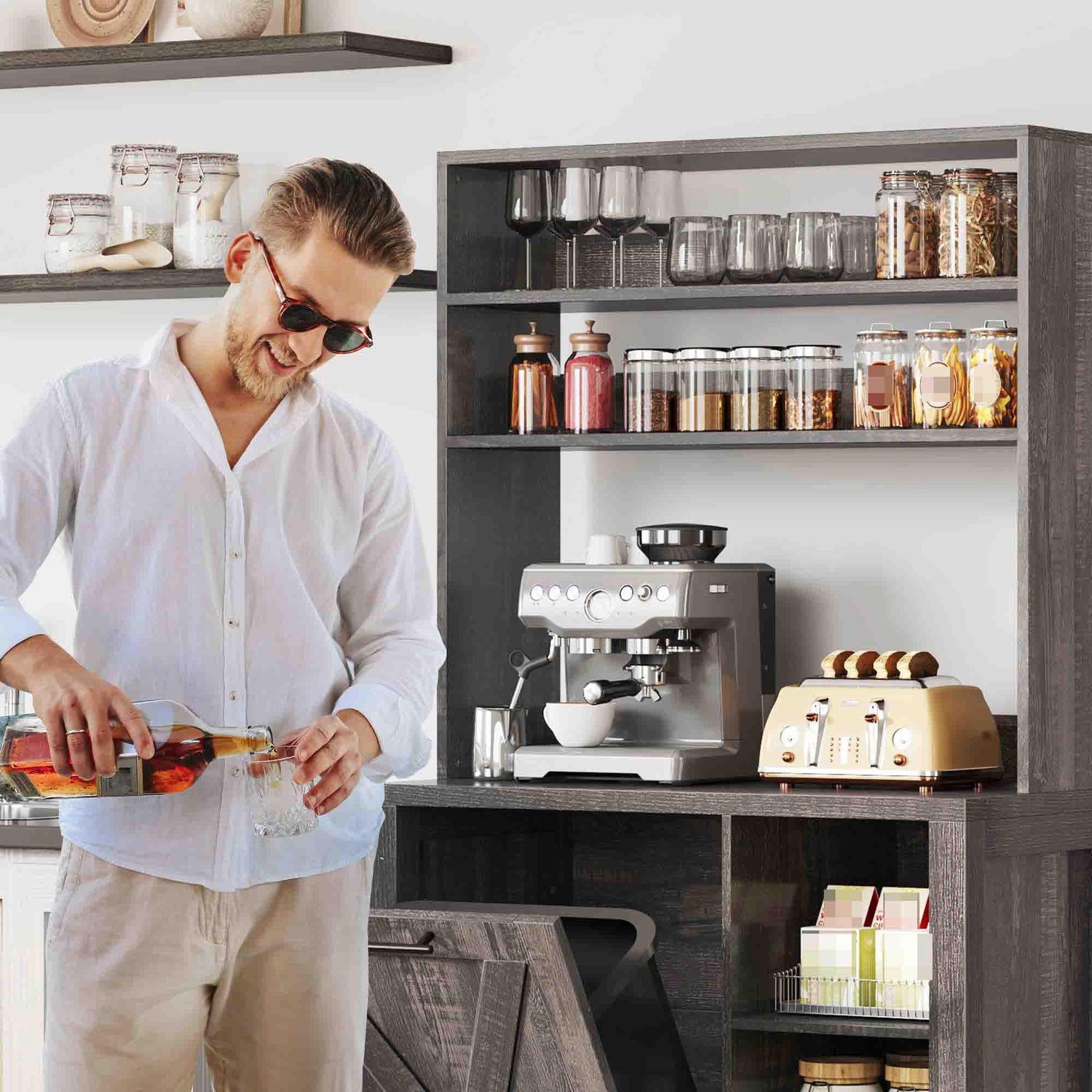 - Multipurpose & Space-Efficient: Designed as a versatile solution, this coffee bar table functions as a microwave stand, coffee bar cabinet, baker's rack, spice organizer, or storage unit for offices and bathrooms. Its compact, vertical design maximizes space and complements rustic decor in any room