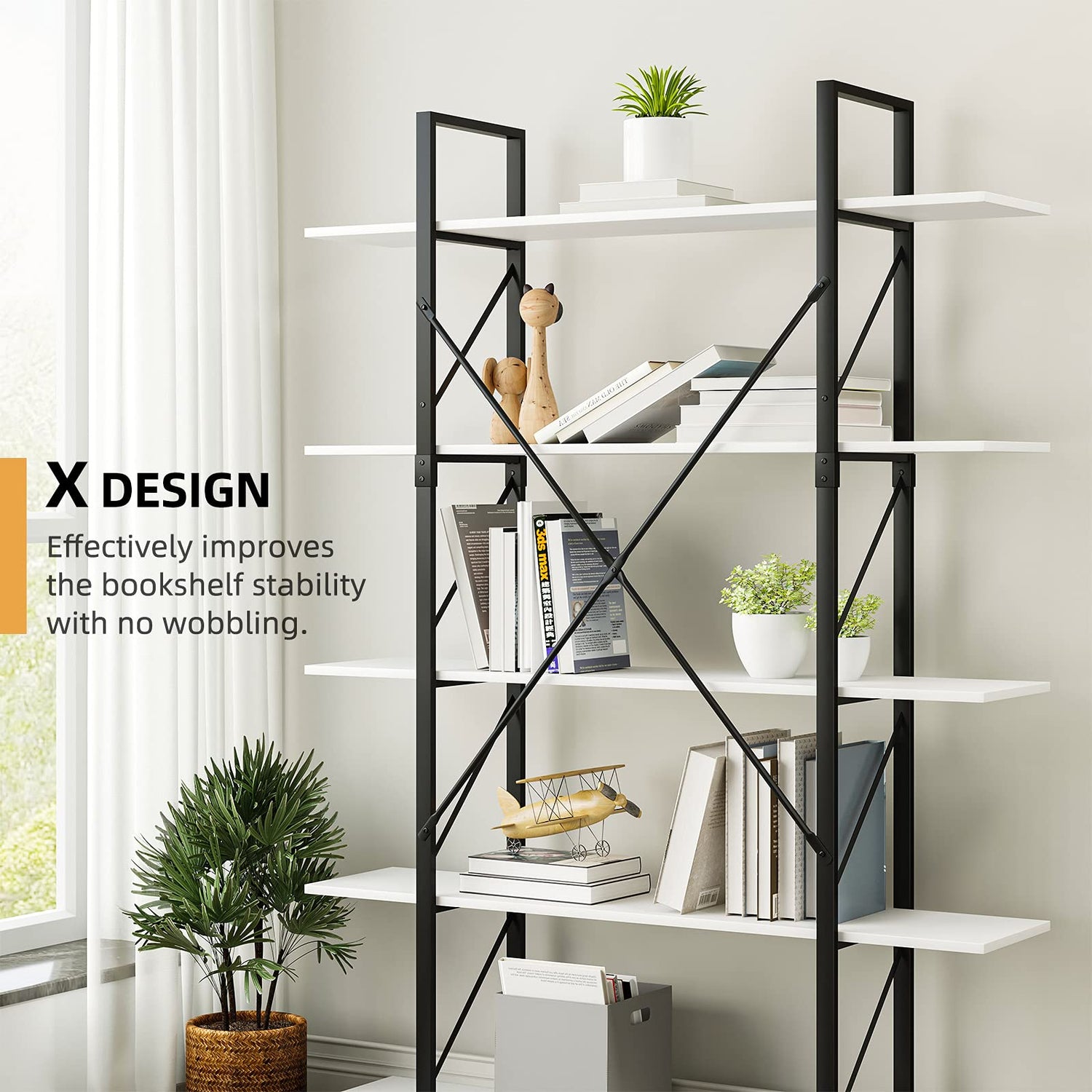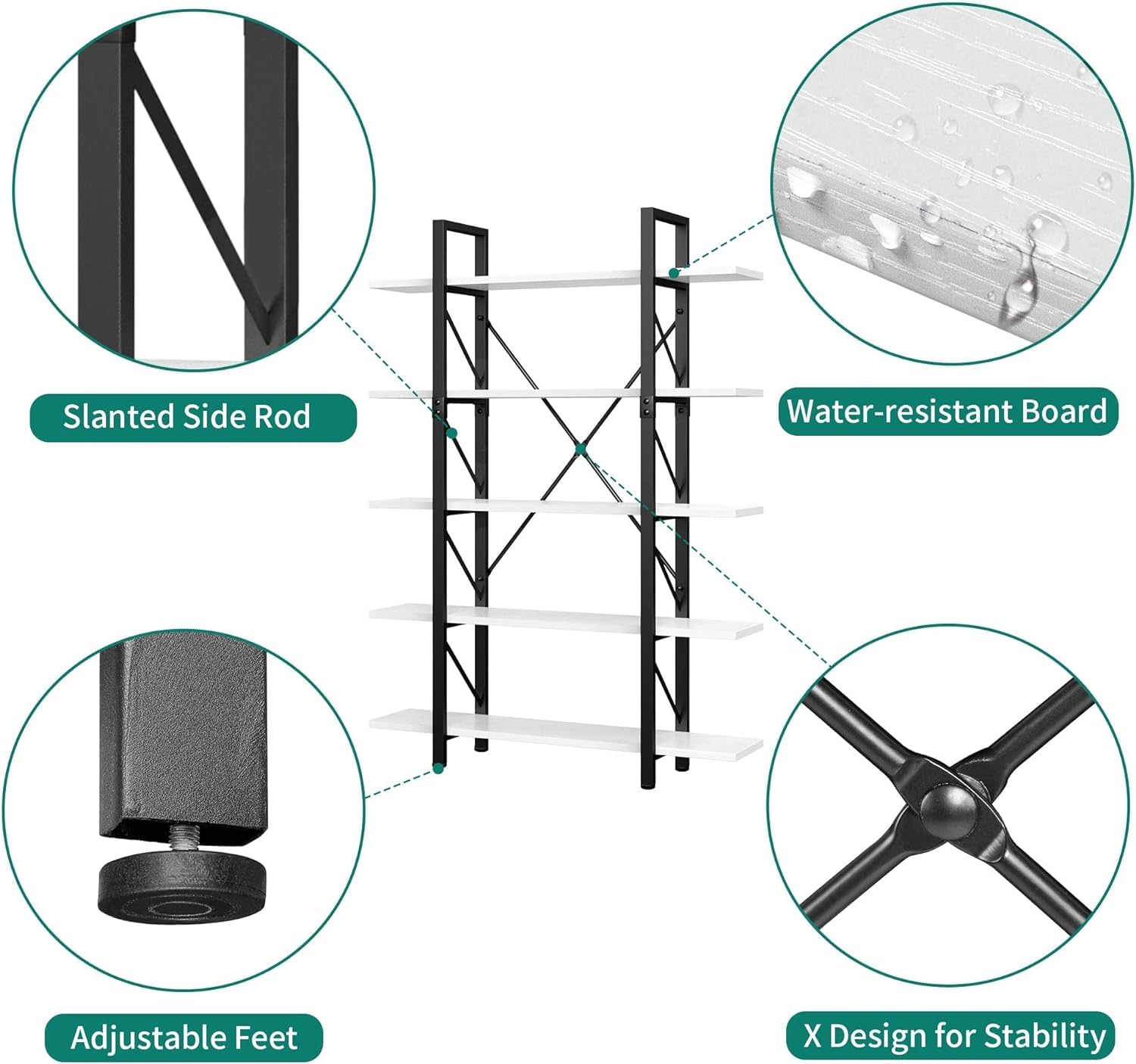 YITAHOME Industrial 5-Tier Bookshelf - Large Freestanding White Storage Unit with Sturdy Metal Frame