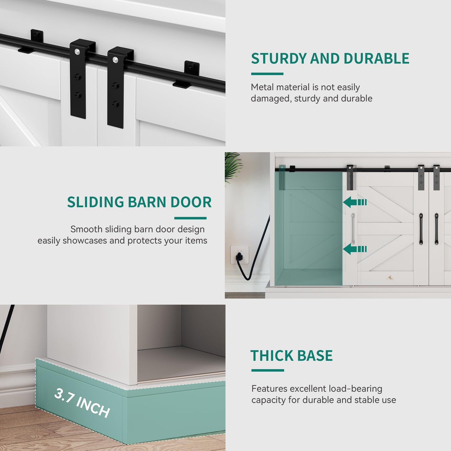 - Sliding Barn Doors: The wine bar cabinet boasts a farmhouse-inspired sliding barn door design, with two smooth-gliding doors and vintage-style handles. Supported by durable iron bars, the barn doors can easily transition between closed and open positions