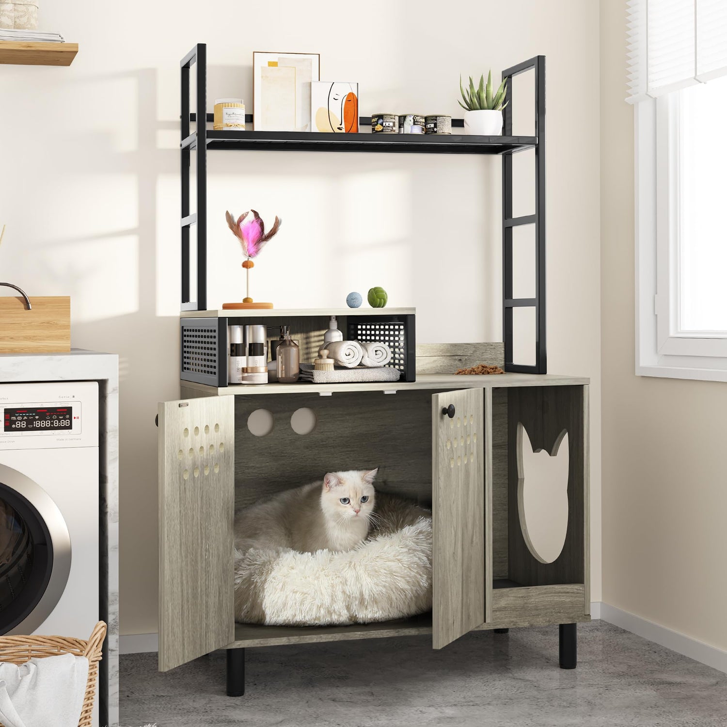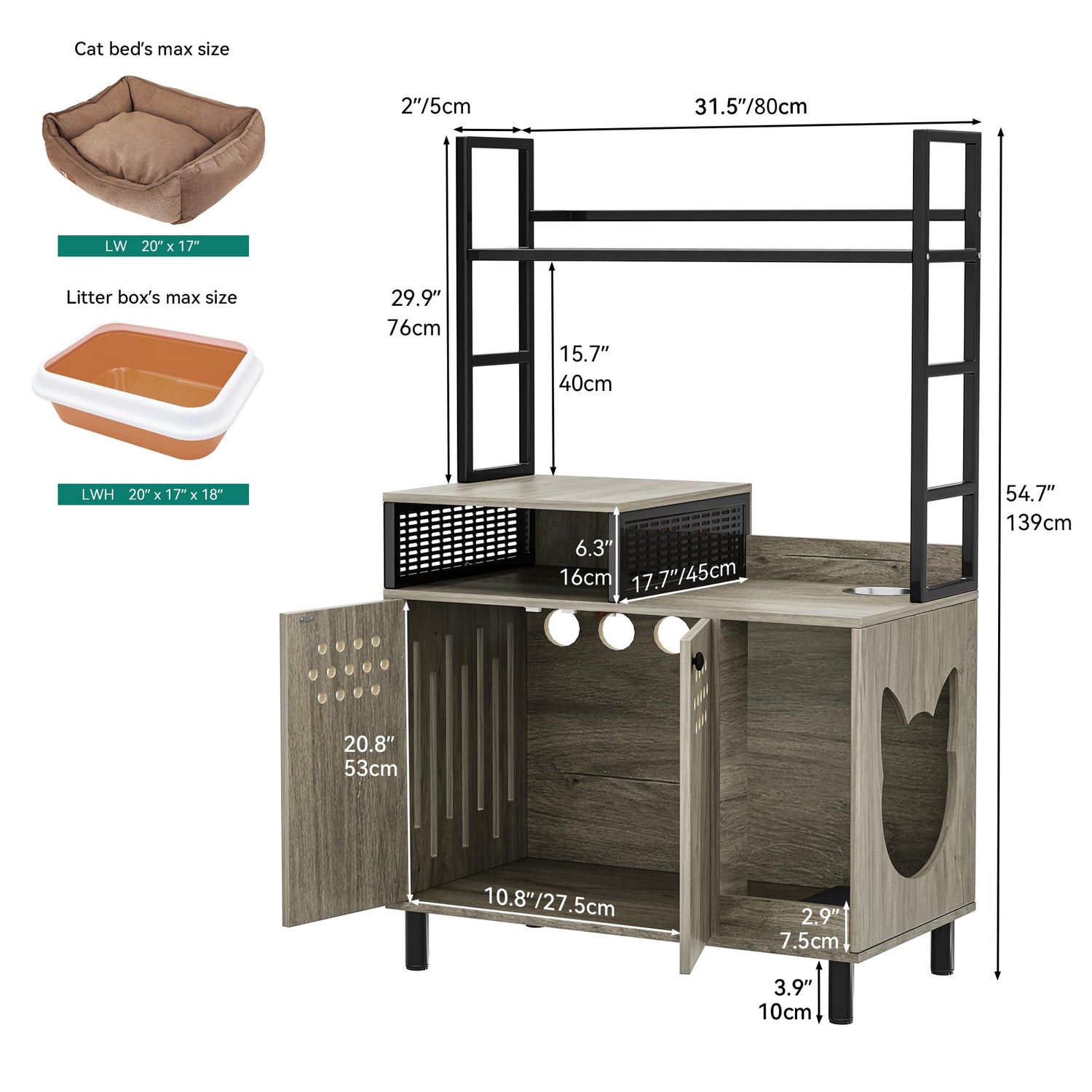 - Multi-functional Storage Rack with Cat Bowl: This cat litter box is a multi-functional storage rack, with a cat bowl set on top of the litter cabinet for convenient feeding that prevents dogs from stealing food