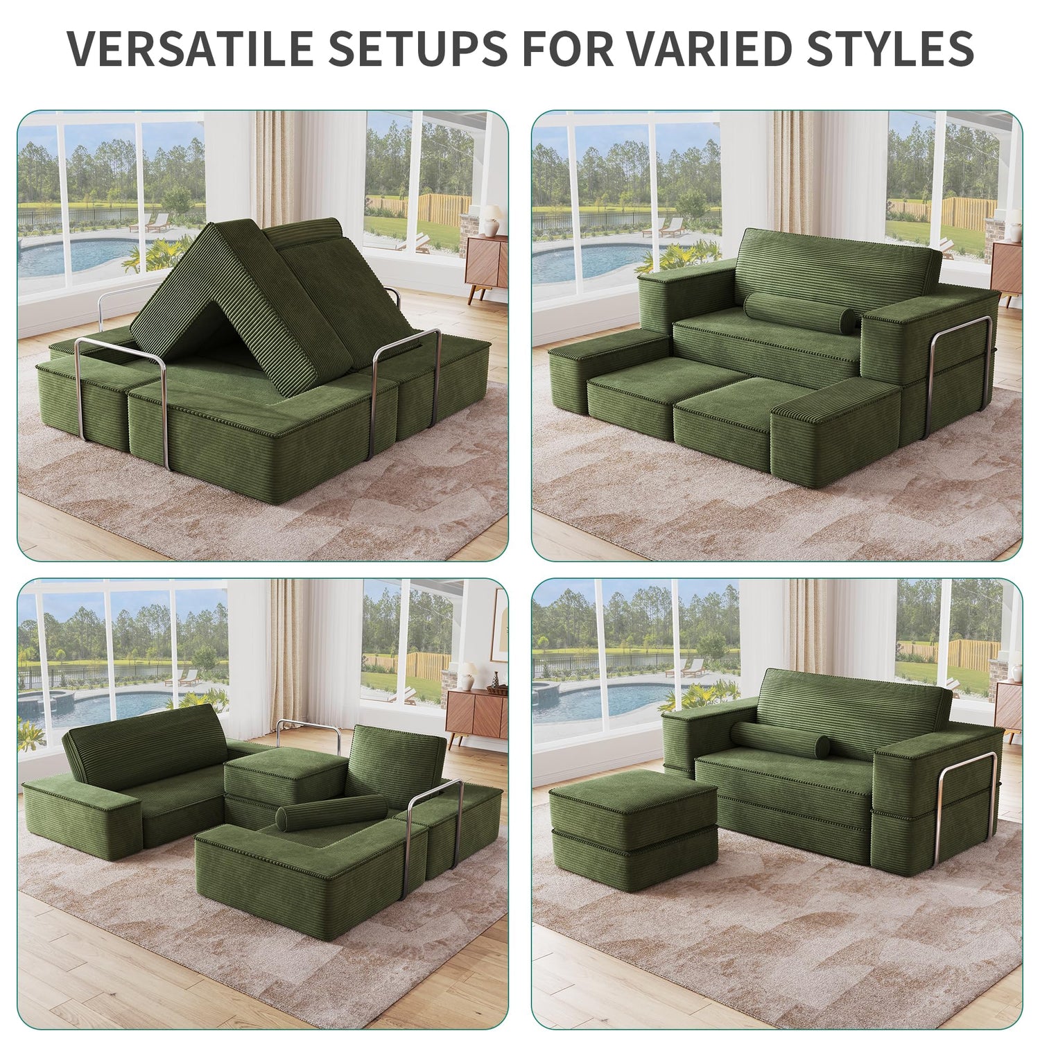 - Sophisticated, Inviting & Pet-Ready:This luxurious corduroy sectional sofa is the epitome of elegance & durability. This floor couch effortlessly enhances any room while withstanding the playful antics of your pets. The easy-to-care-for fabric is also great for your busy, stylish life