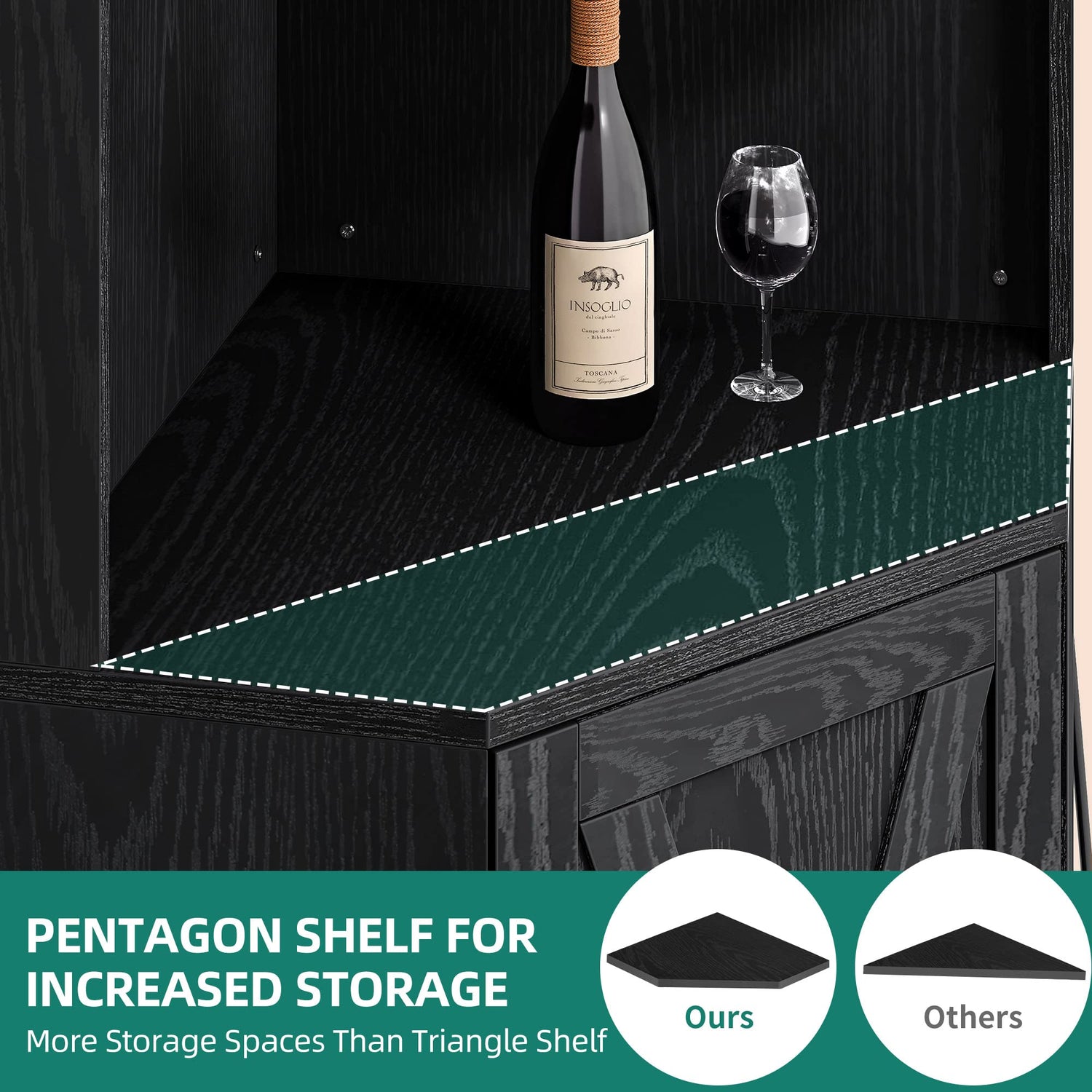 Transform your space with the YITAHOME Black Corner Bar Cabinet, a perfect fusion of style and functionality. This innovative corner shelf is not just a storage solution; it's a statement piece that enhances the aesthetics of any room.
