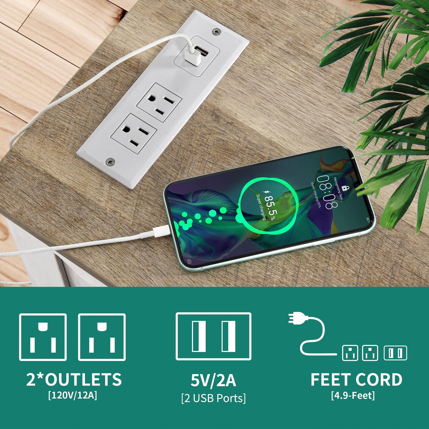 - Easy-to-reach charging station: No worry about inadequate or hard-to-reach outlets! With this narrow side tables, power source is all around you 2 USB ports, 2 power outlets & a 4.9 ft power cord make it convenient to charge your phone, desk lamp or laptop.