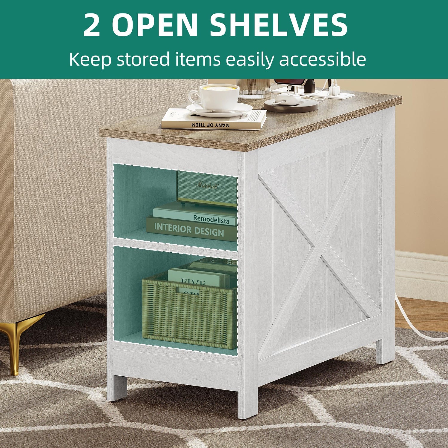 - Practical & solid: Made of sturdy board, our end table with charging station features higher bending resistance. The side board adds a X shape, lending a farmhouse vibe. The wooden legs stably support heavy weights and are anti-slip & scratch-resistant.