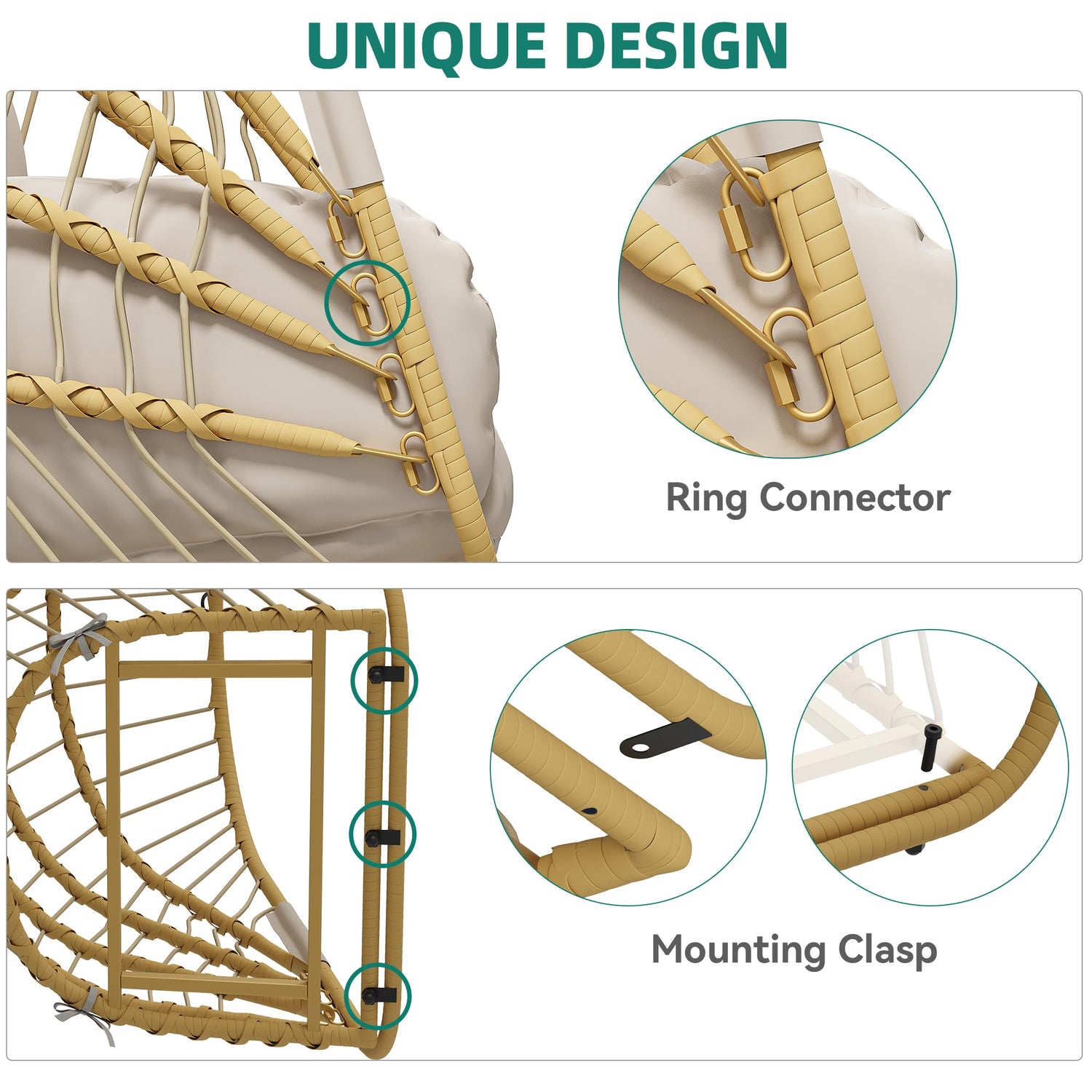 - Ultra-Comfortable Cushions: Experience next-level comfort with thick, resilient polyester cushions. Designed with interchangeable cushion modes, this outdoor egg chair swing adapts to your needs—ideal for reading, lounging, or afternoon naps