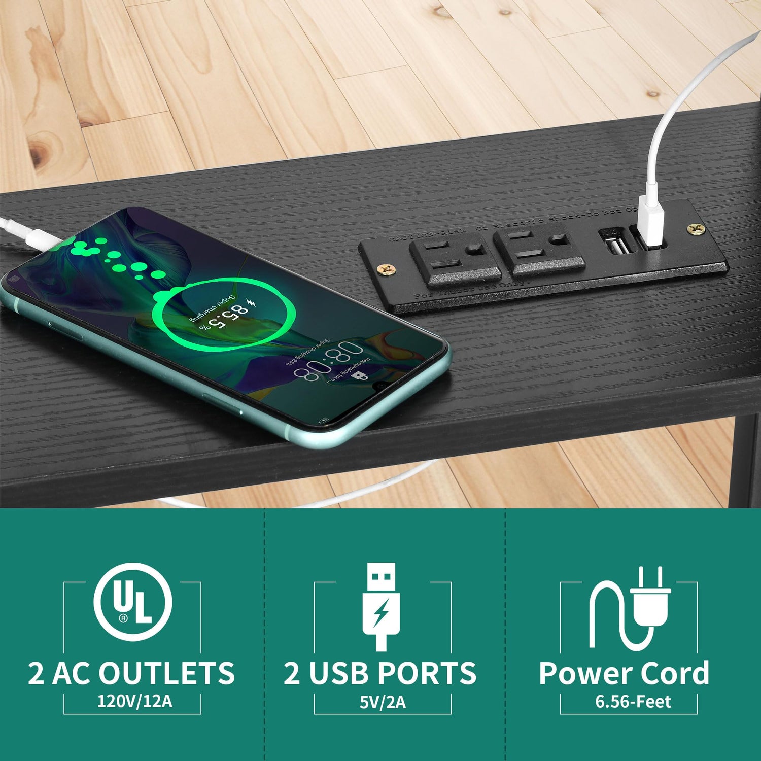 - Convenient charging station: No worry about the low battery of your laptop or mobile phone when working!2 USB ports, 2 power outlets & a 6.56ft power cord make it convenient to charge at any time.