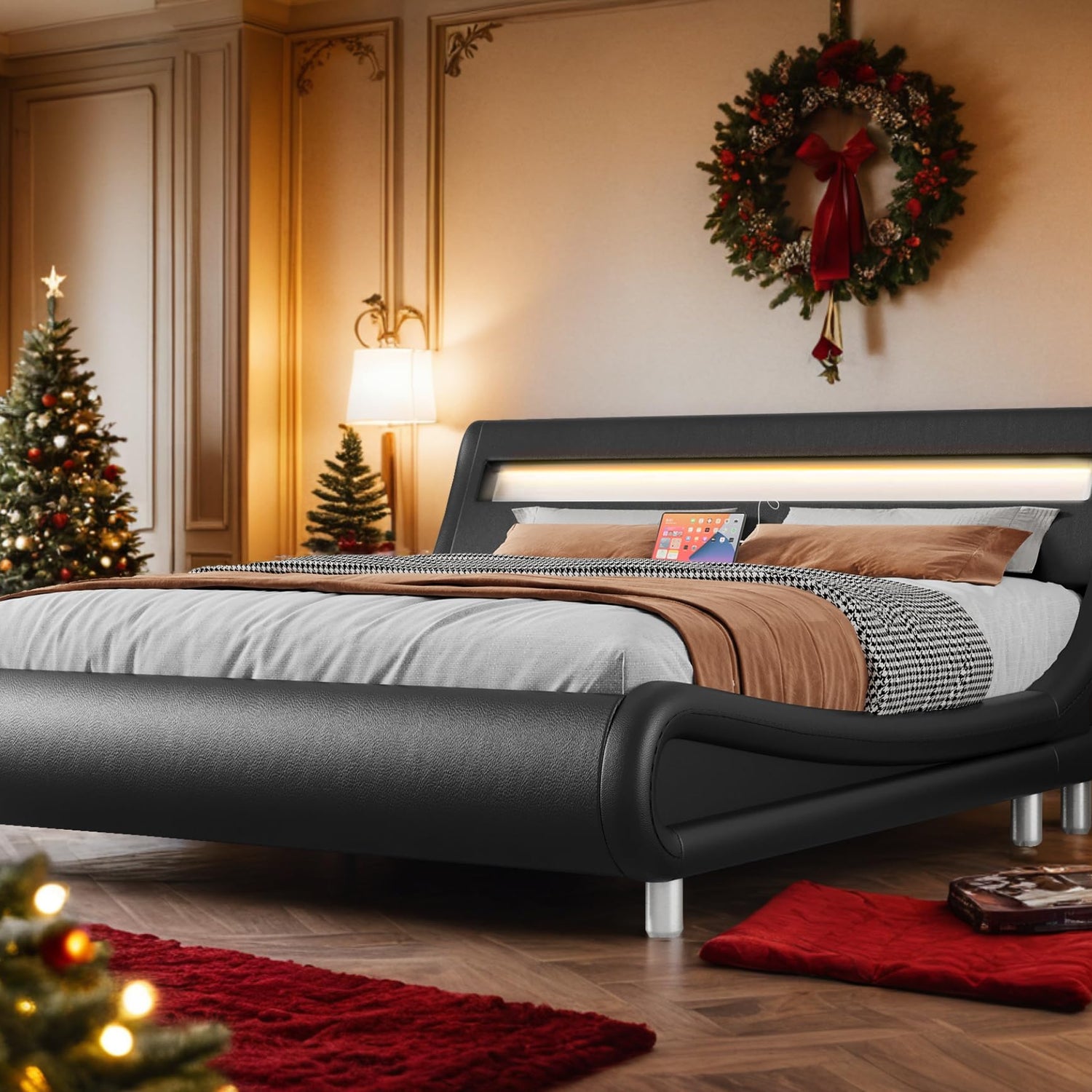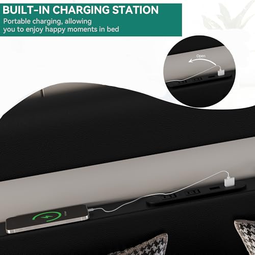 YITAHOME King Size LED Platform Bed Frame with Adjustable Headboard/No Box Spring Need/Easy Assembly/Faux Leather in Black
