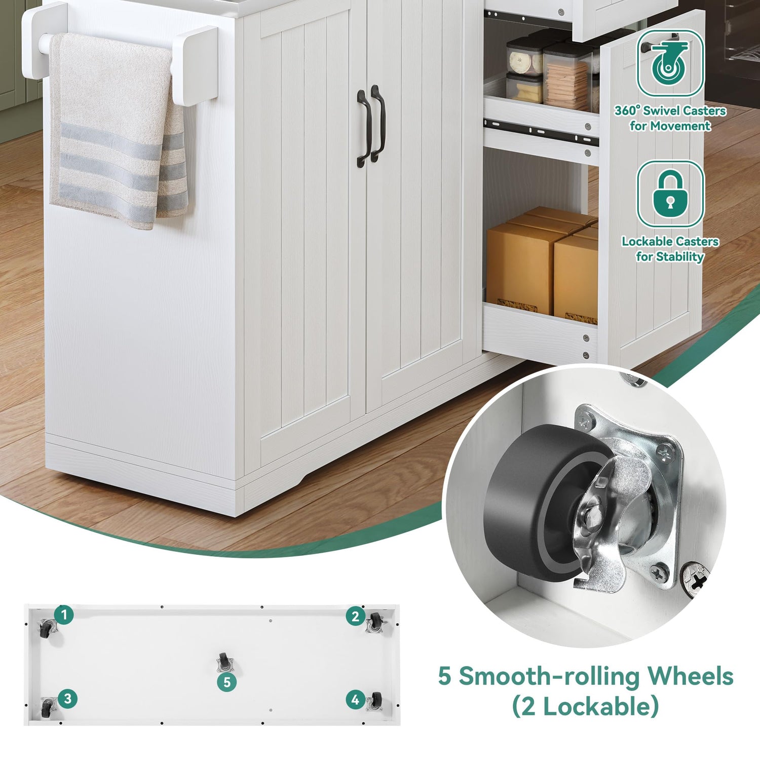- Convenient Mobility & Stability: Five 360° heavy-duty casters (2 locking) ensure effortless movement of this rolling kitchen island on wheels, allowing flexible positioning as a kitchen table.