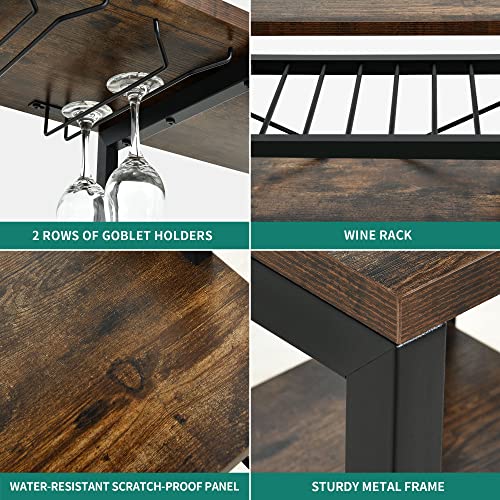 YITAHOME Rustic Brown Kitchen Microwave Stand and Bakers Rack with Power Outlet - 39 Inch Freestanding Coffee Bar with Wine Storage and Cup Holder