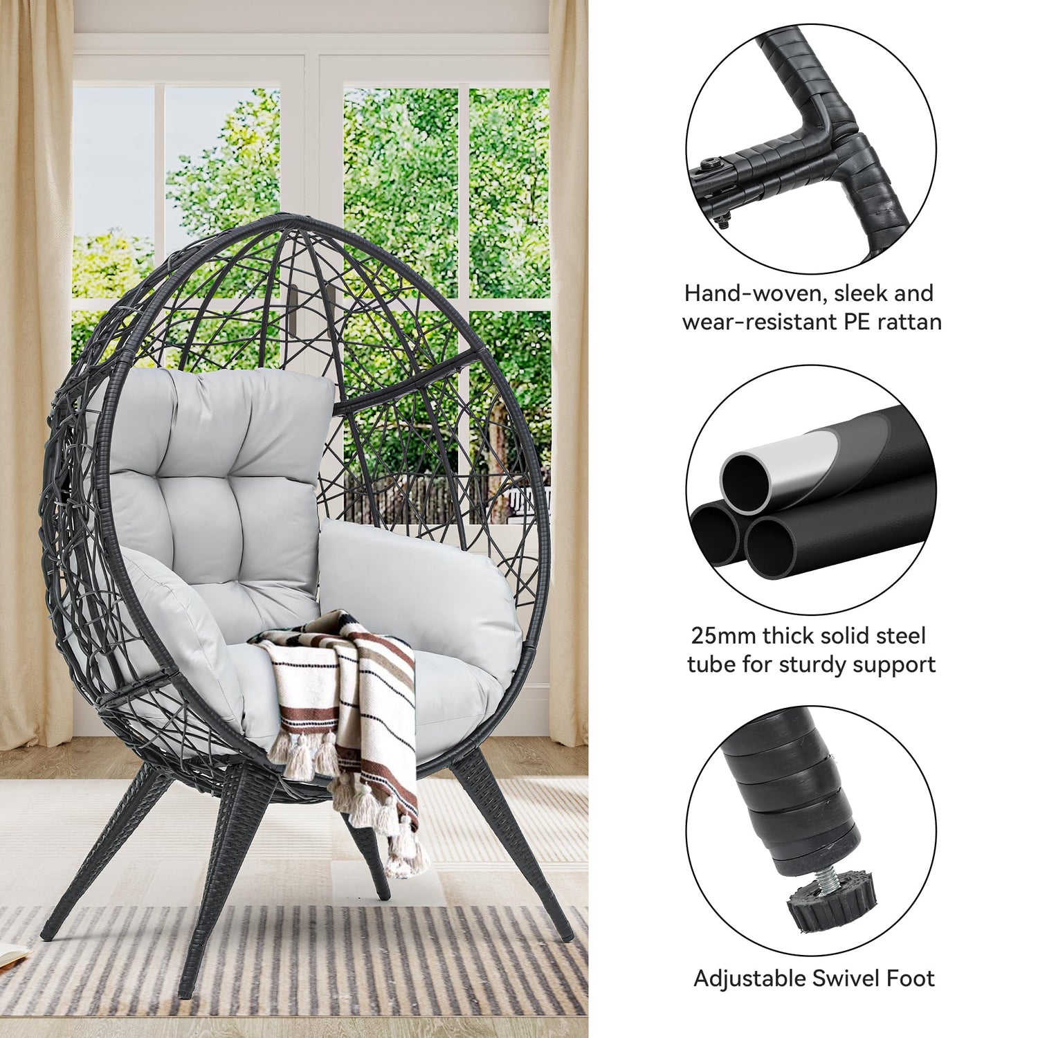YITAHOME Large Wicker Egg Chair with Stand for Indoor and Outdoor, Cushion, and Adjustable Leveling Feet, Large Lounger for Garden, Patio, Balcony, Backyard,Supports up to 330lbs, Gray