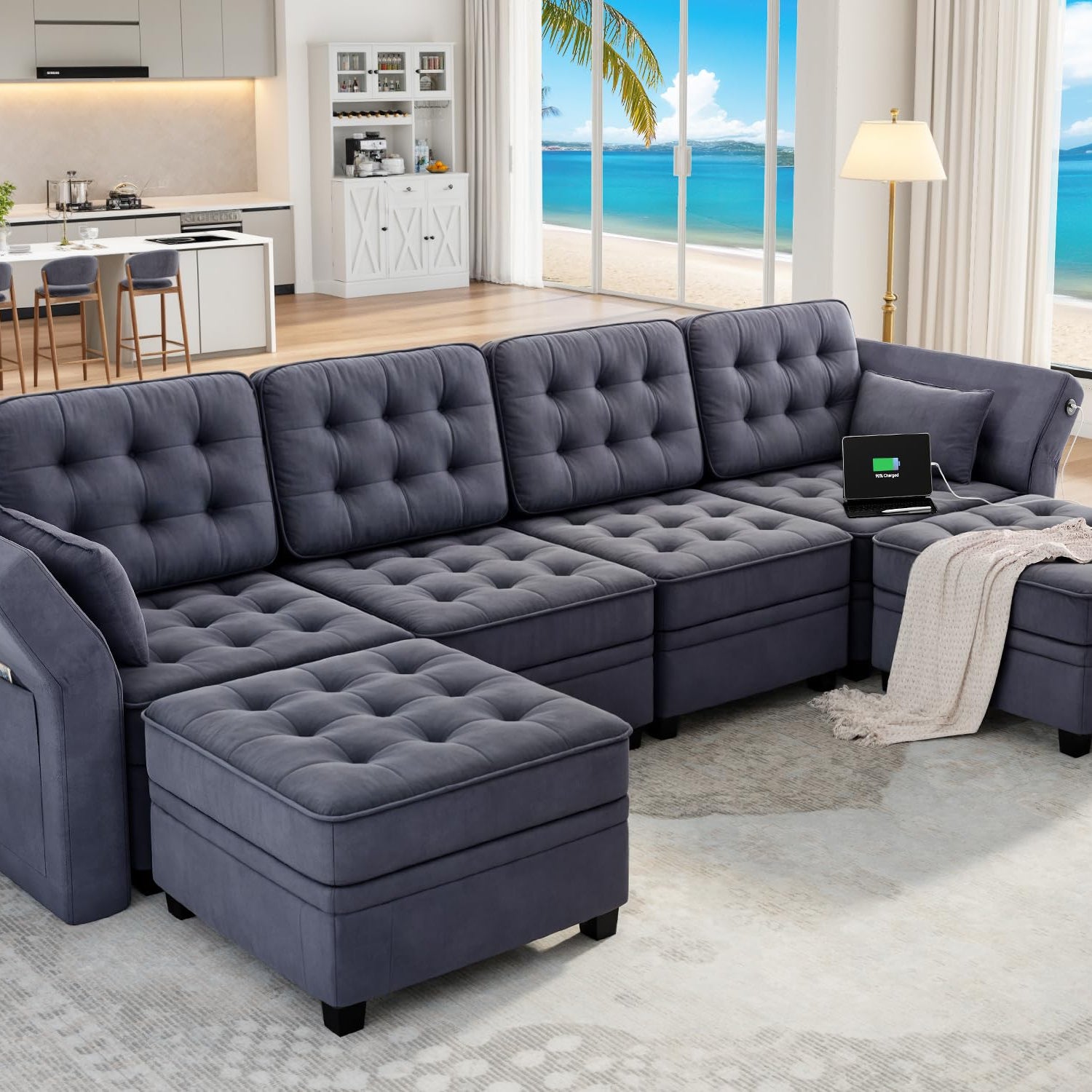 - Innovative Functionality: Immerse innovation with our modular sectional 6-piece couch; For your living room or study, with 3-position adjustable armrests and backrests for your comfort; Armrests with built-in USB ports offer modern convenience, powering up your devices during your cozy leisure moments