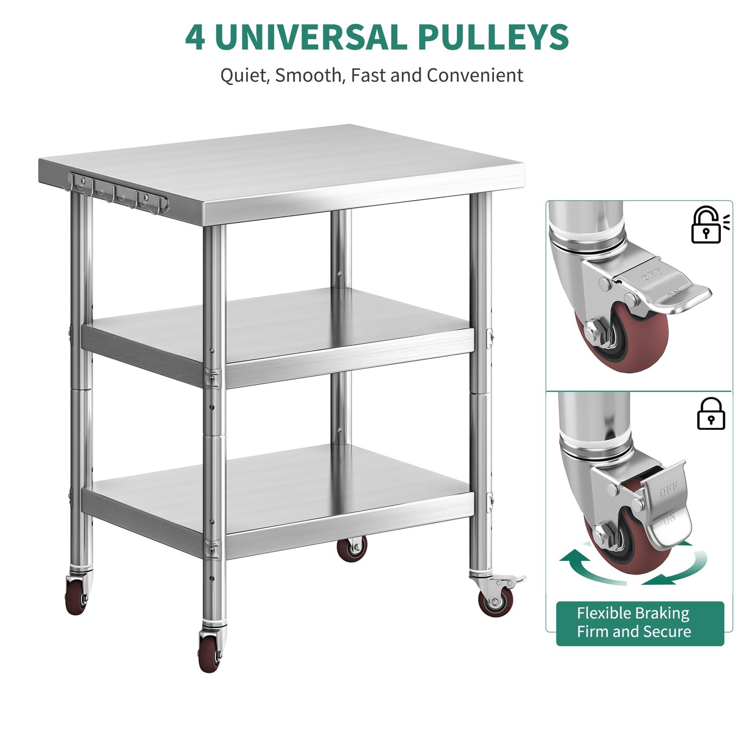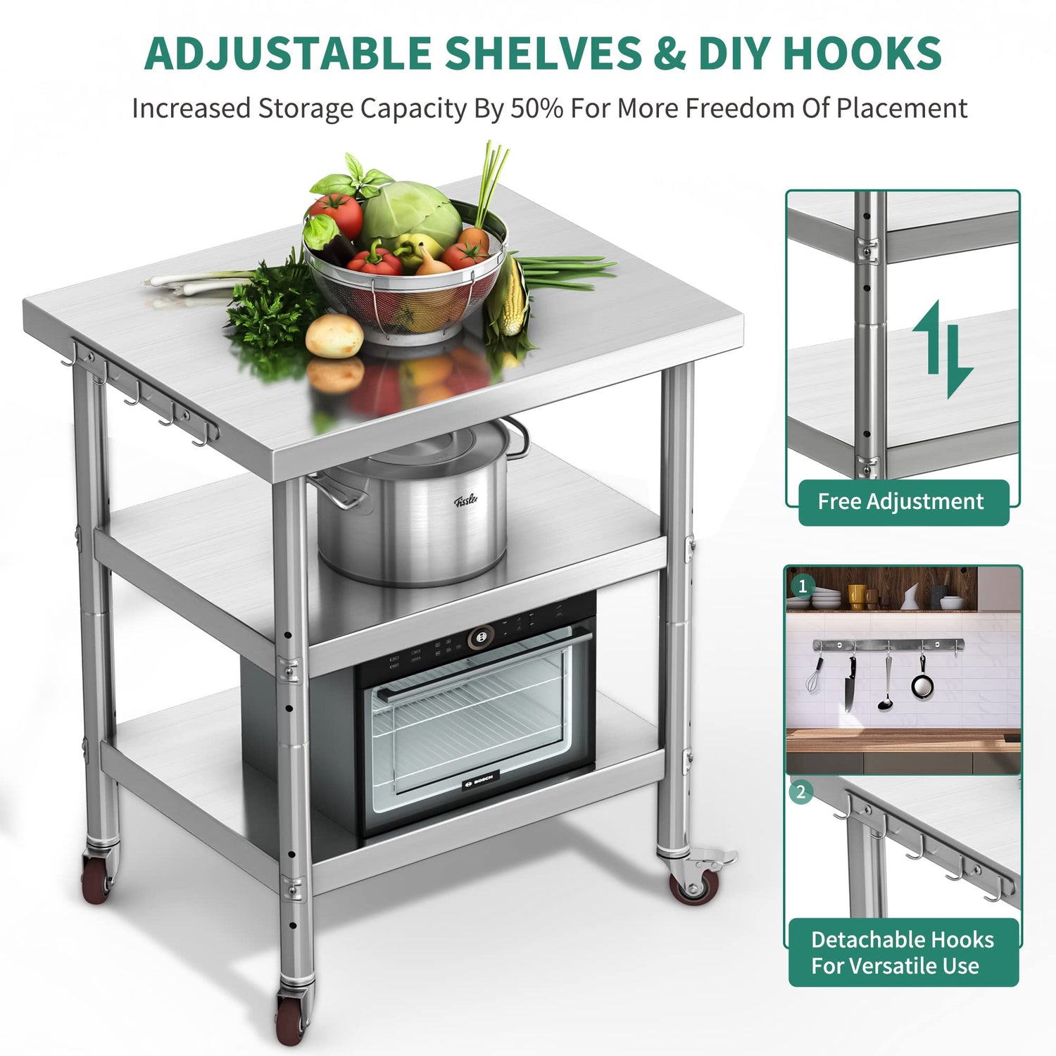 YITAHOME NSF Stainless Steel Table, 36" X 24" Work Table with Wheels, 3 Shelves Metal Table Prep Table for Home Kitchen Restaurant Garage Warehouse Outdoor