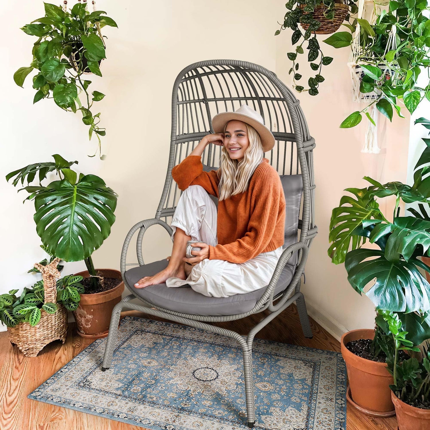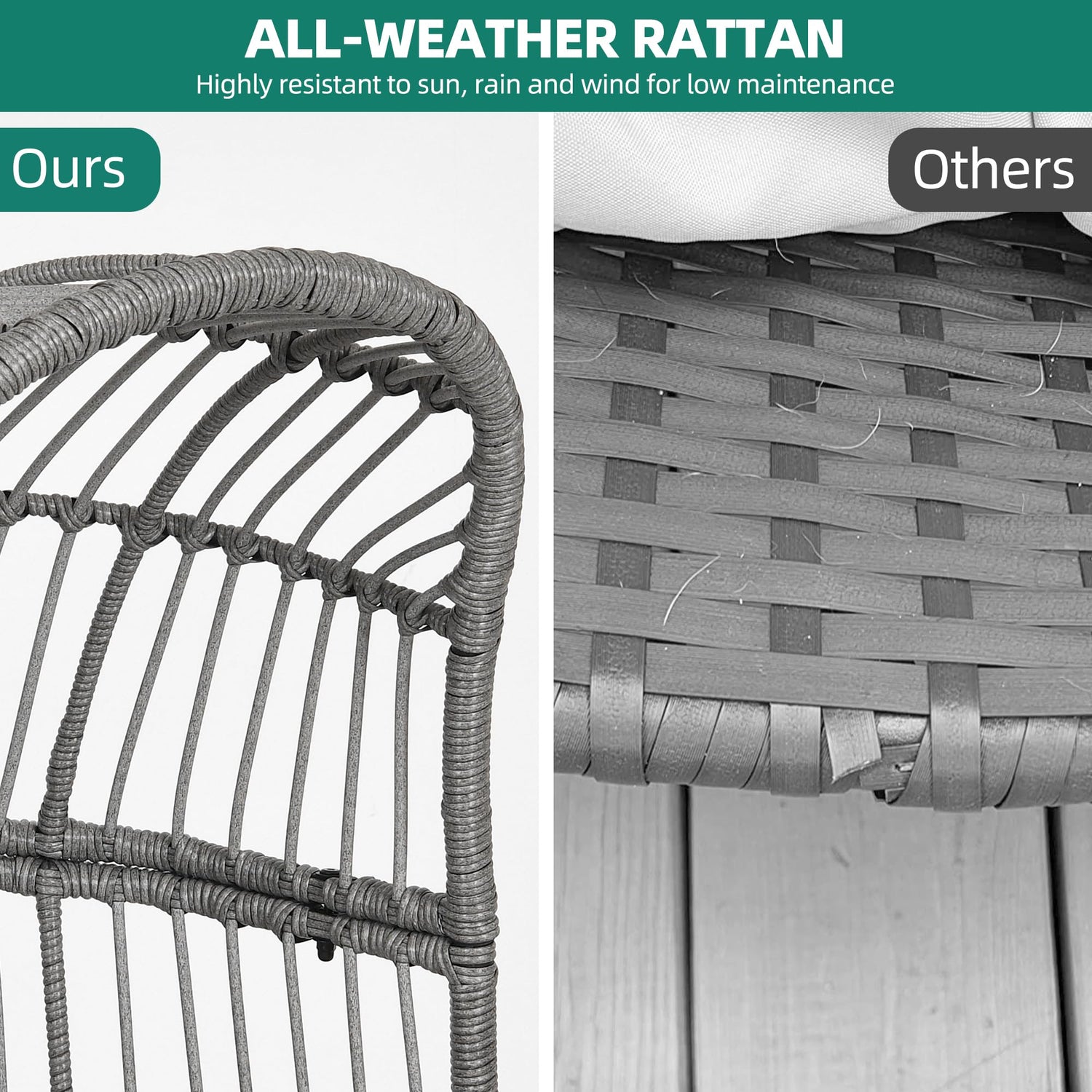 YITAHOME Outdoor Narrow Egg Chair Wicker, Patio Rattan Basket Chair with 370lbs Capacity Indoor Egg Chairs with Stand & Cushion Cocoon Chair for Bedroom, Patio, Balcony - Grey
