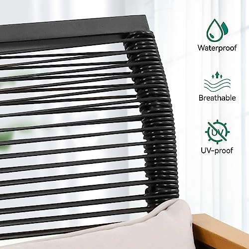 - COMFORTABLE LOVESEAT: The woven rattan sofa stands out with mixed colored armrests - natural wood and black materials harmonize with rattan design; A stylish set of loveseat chair to bring richness to your living room, porch, courtyard, and poolside