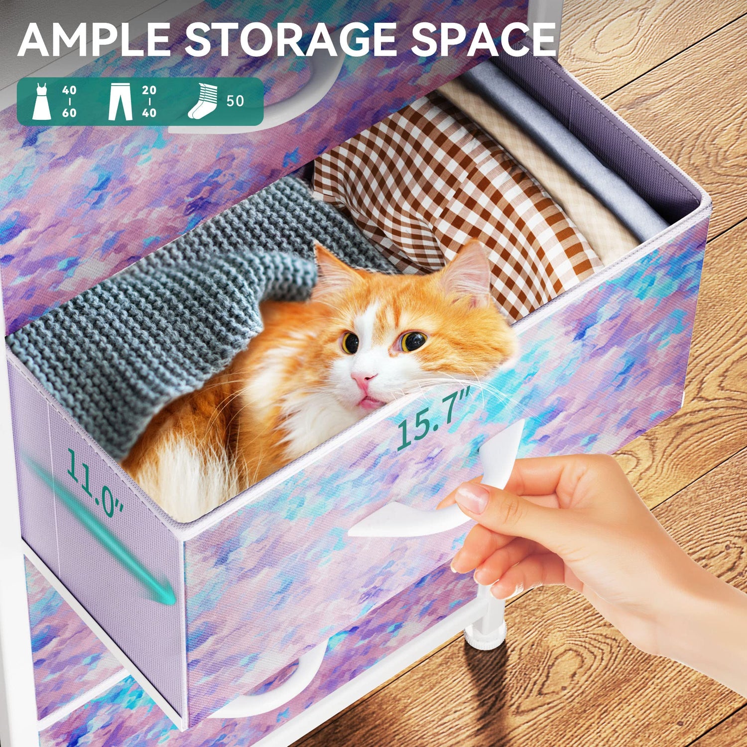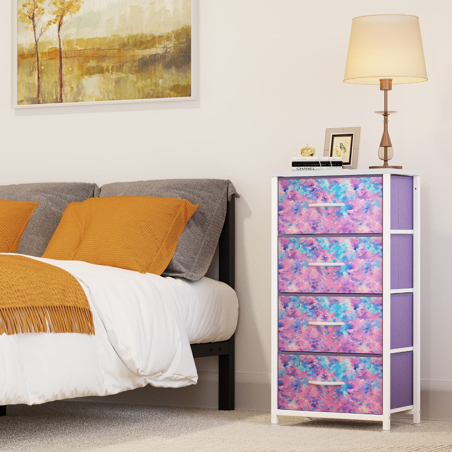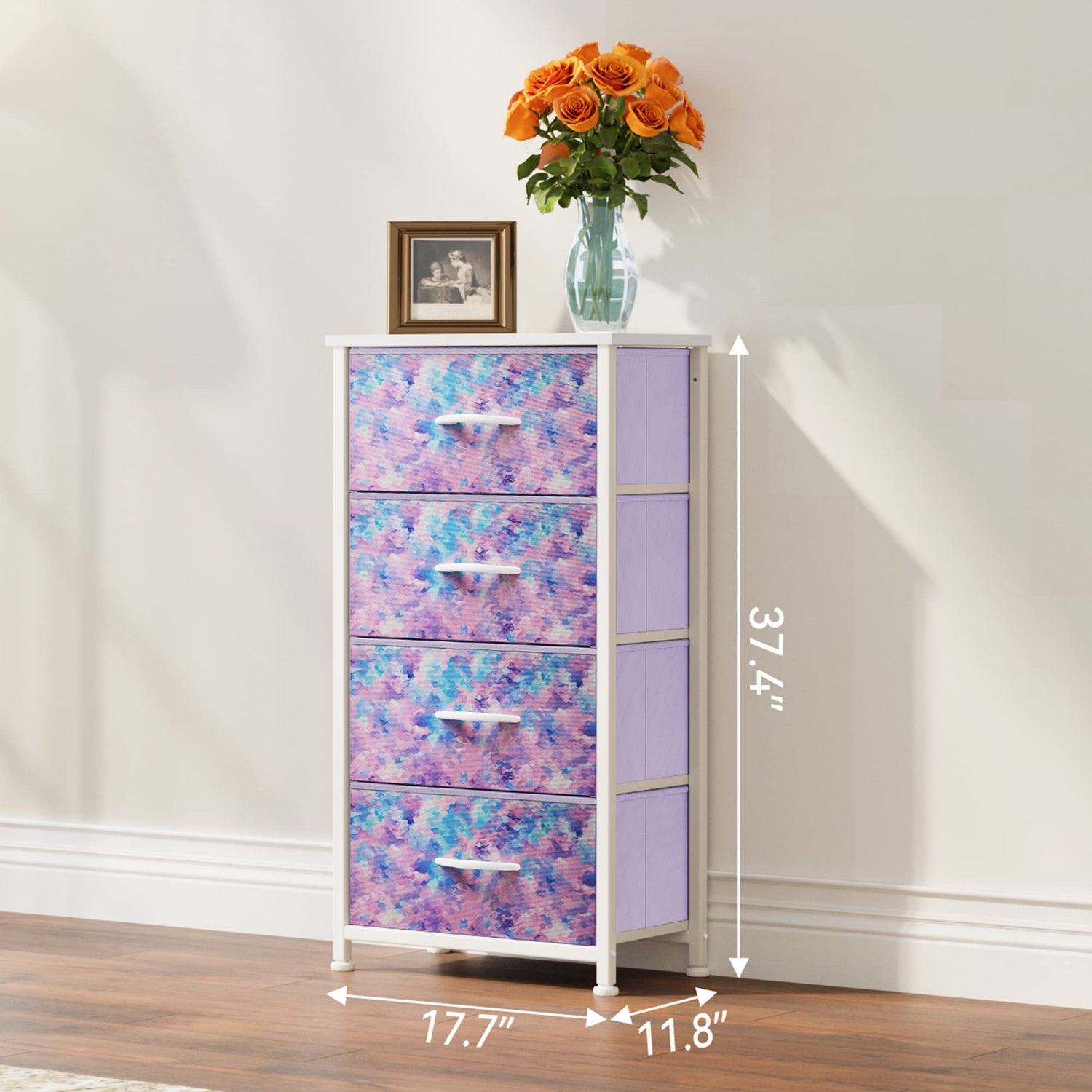 YITAHOME Purple Dresser with 4 Drawers - Storage Tower Unit, Kids Dresser for Bedroom, Living Room, Closets - Sturdy Steel Frame, Wooden Top & Easy Pull Fabric Bins