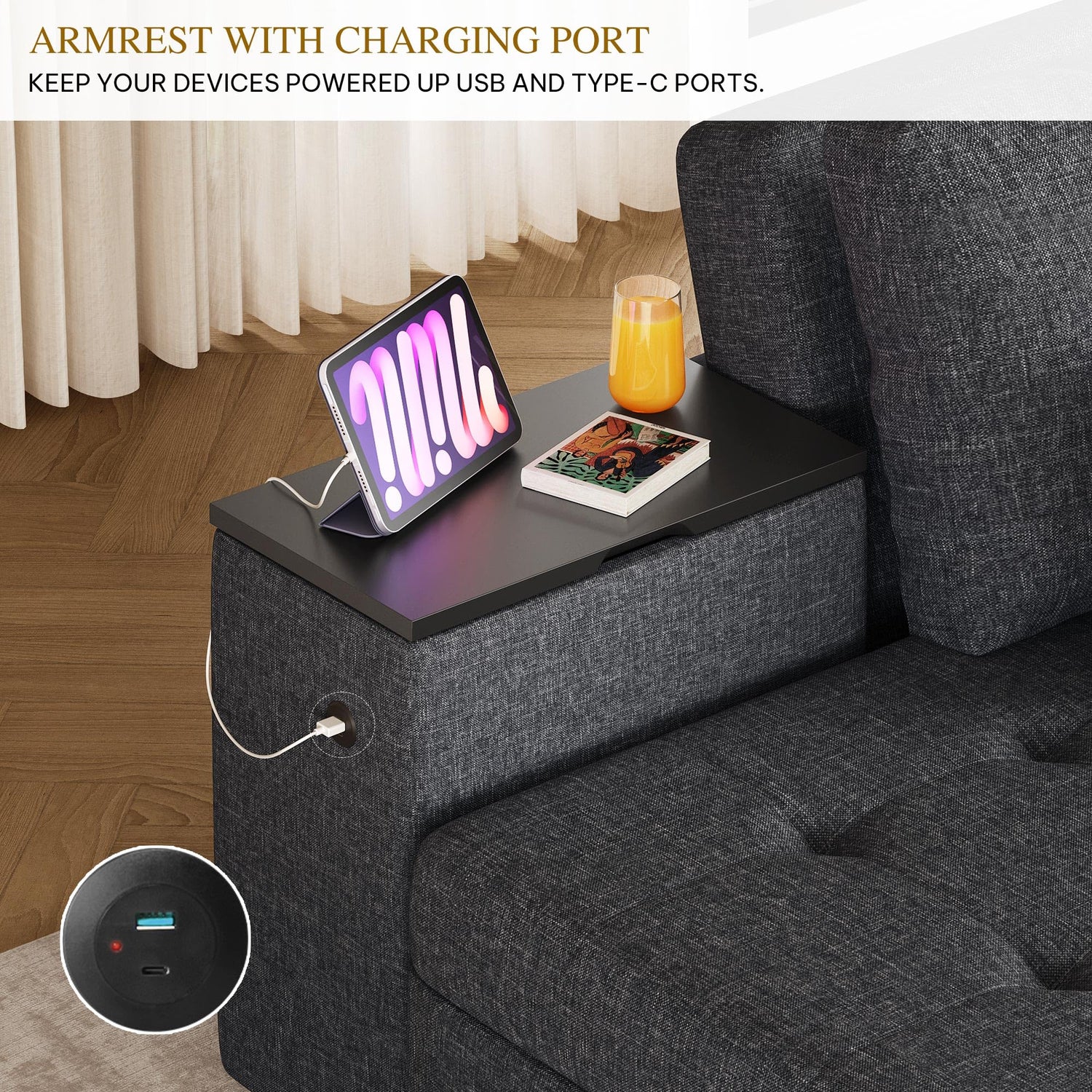 - Charge While You Unwind: With built-in USB and Type-C ports right in the nightstand, you’ll never run low on power while binge-watching or scrolling through your feed. Charge your devices without ever having to leave your comfy spot