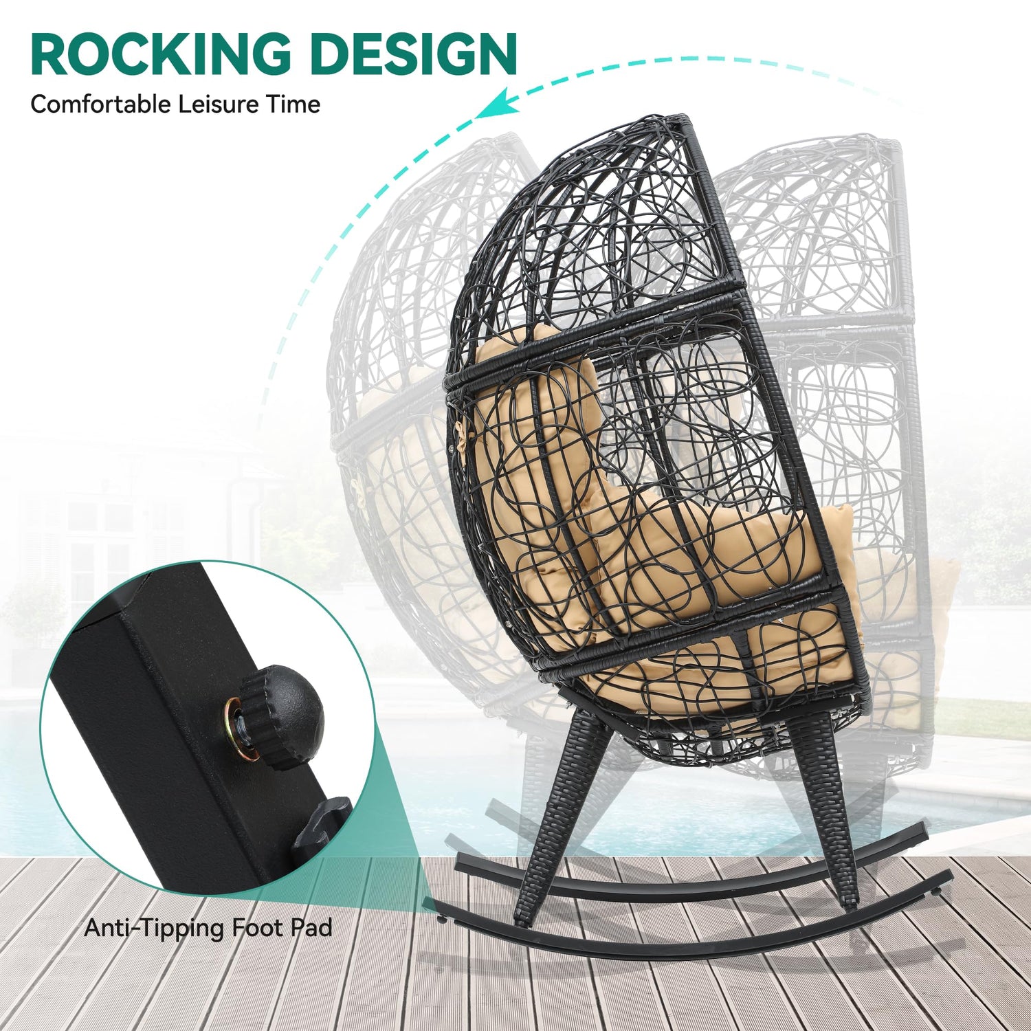 - Exceptional Comfort: This rocking egg chair is designed for unrivaled comfort; With its rocking chair design and thick, soft cushions, it provides a sanctuary for relaxation; Whether you're reading a book or unwinding after a long day, this chair is your retreat