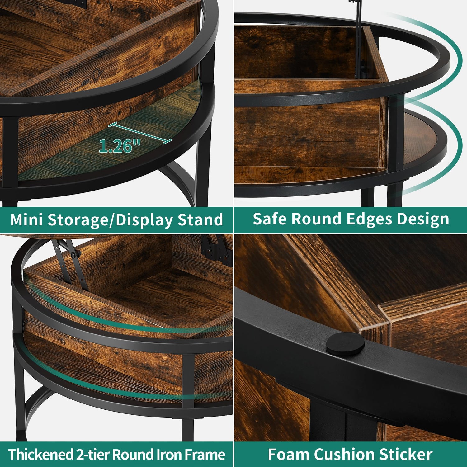 YITAHOME Round Lift Top Coffee Table with Storage, Coffee Tables for Living Room with Hidden Storage Compartment, Modern Coffee Table for Home Office, Wood Center Tables Living Room, Rustic Brown