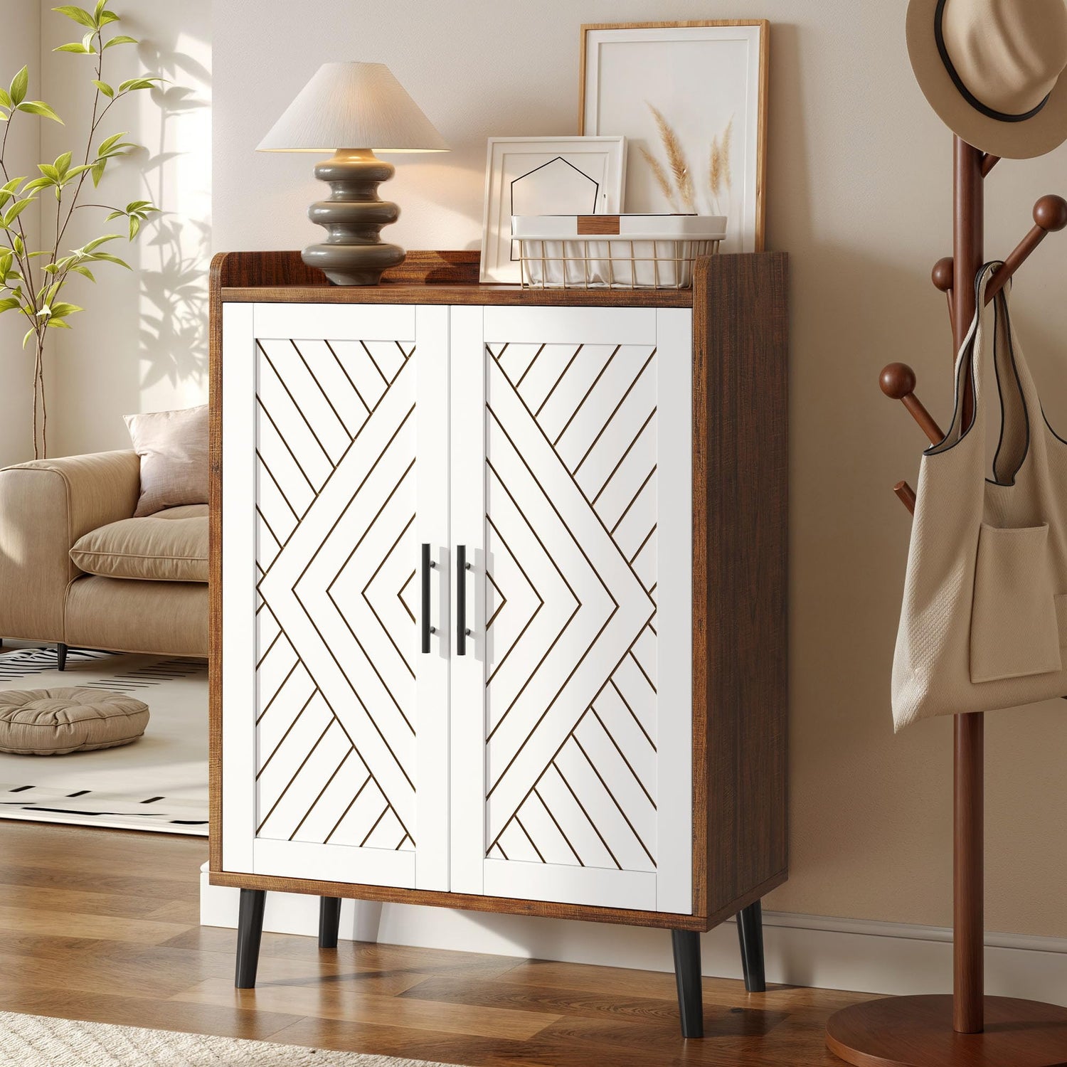 • Compact & Elegant Design Shoe Cabinet: Featuring a timeless wooden finish (brown & white), this shoe cabinet with doors adds a touch of sophistication to any space. The textured doors and elegant black feet of the shoe cabinet storage for entryway create a luxury modern look, suitable for small apartments or spacious homes.