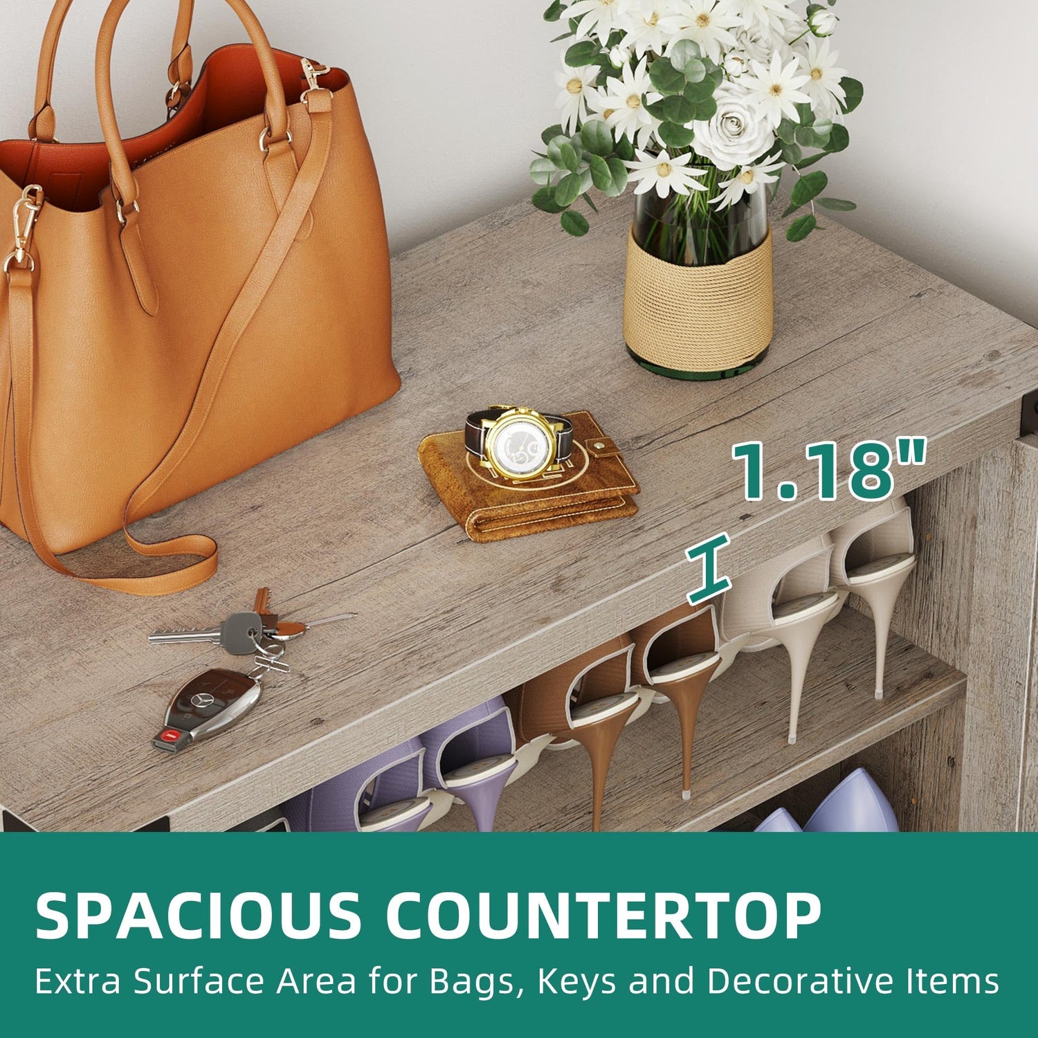 - Elegantly refined: Featuring exquisite X pattern, this farmhouse entryway shoe storage cabinet adds a natural charm to your home. It effortlessly complements any furniture in entryways, living rooms, hallways, and small apartments.