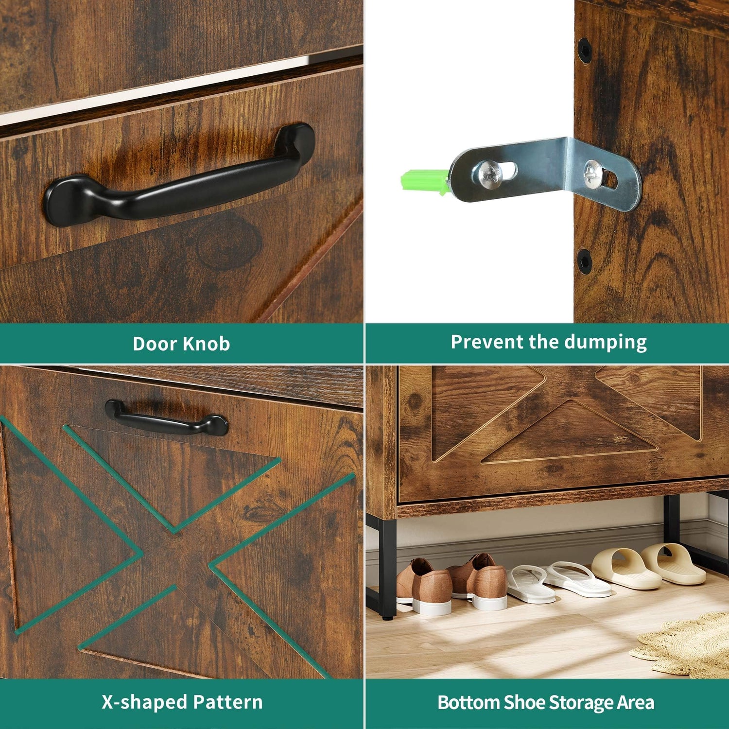 - Exquisite shoe cabinet: Step into style with our entryway shoe storage cabinet! This rustic brown beauty adds a touch of elegance to any space. Whether it's your entryway, hallway, living room, or porch, this narrow shoe cabinet brings both organization and charm to your home