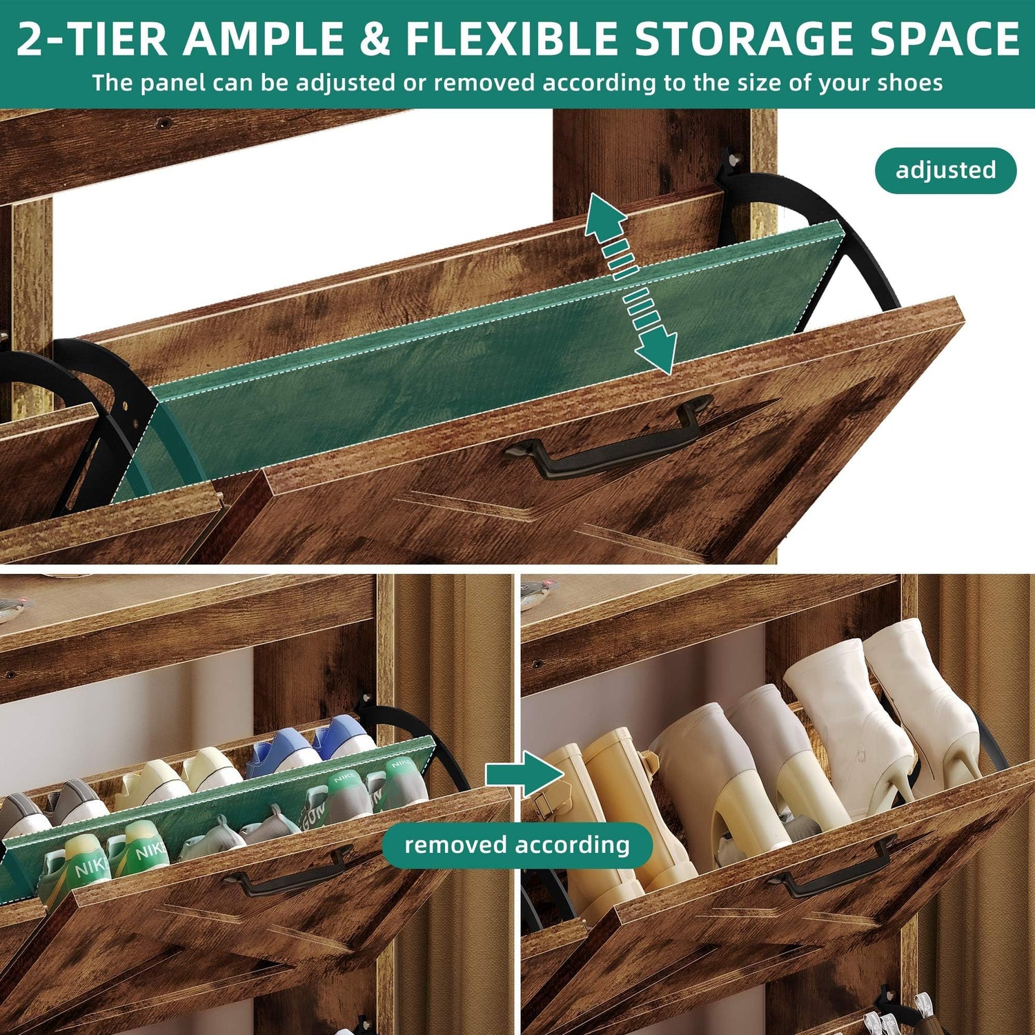 - Modern flip drawers: Tired of tripping over scattered shoes? Our flip drawers make accessing your shoes a breeze. No more pets biting your favorite pairs! Keep your entrance clean and ready to next adventure