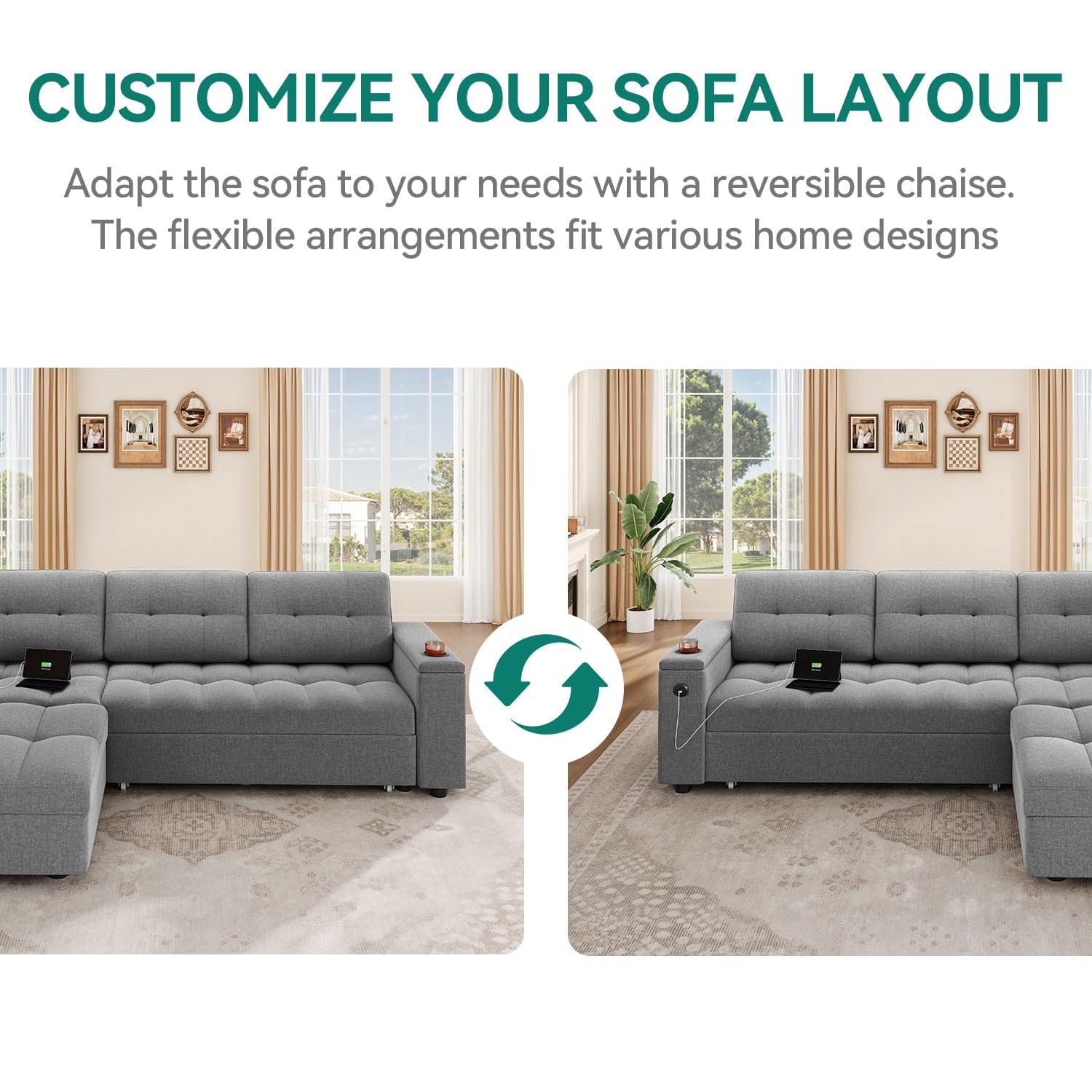 - Integrated USB Ports: This L-shaped reversible sofa bed features 2 built-in USB charging ports, which make your daily life convenient as you can charge electronic devices directly from the sofa within arm's reach