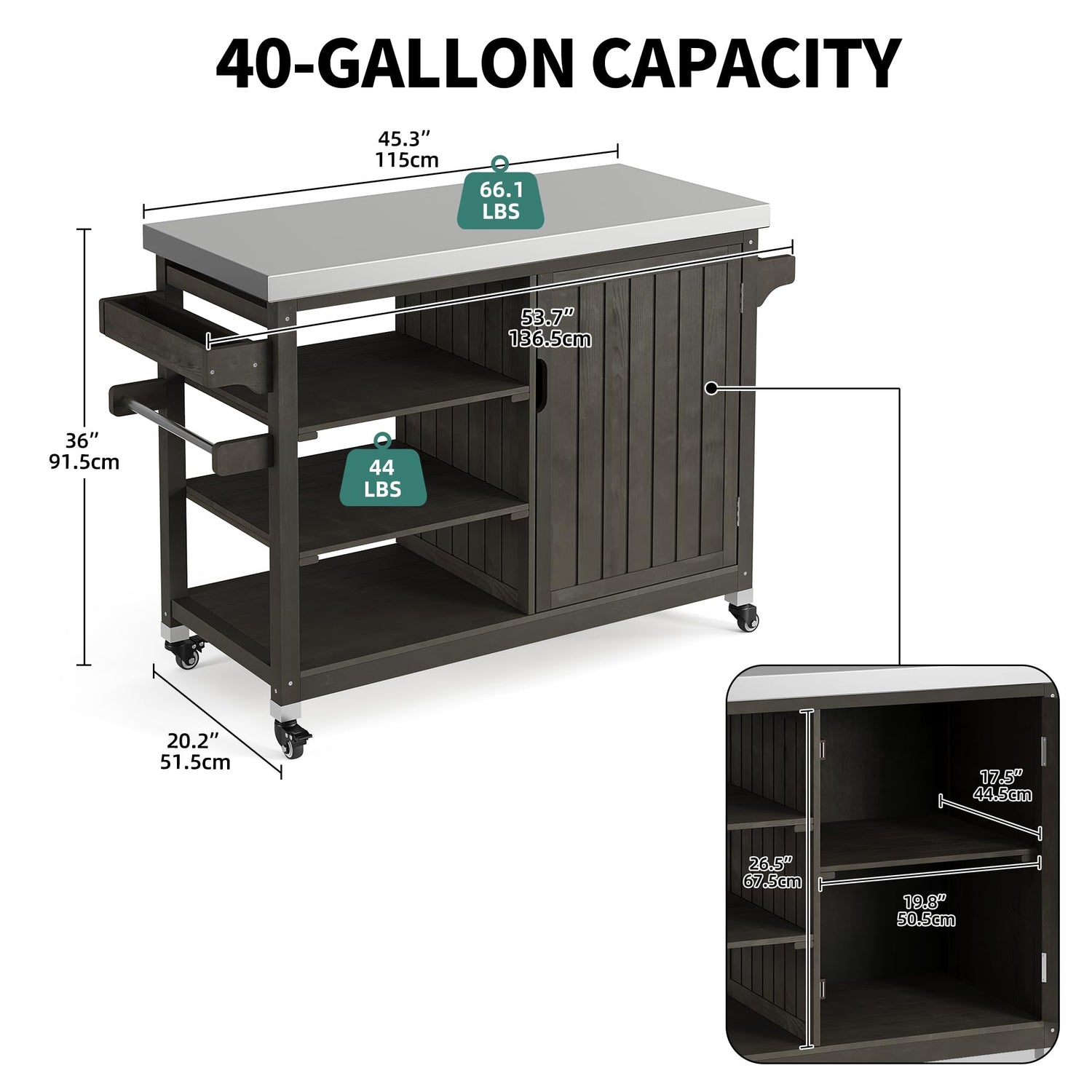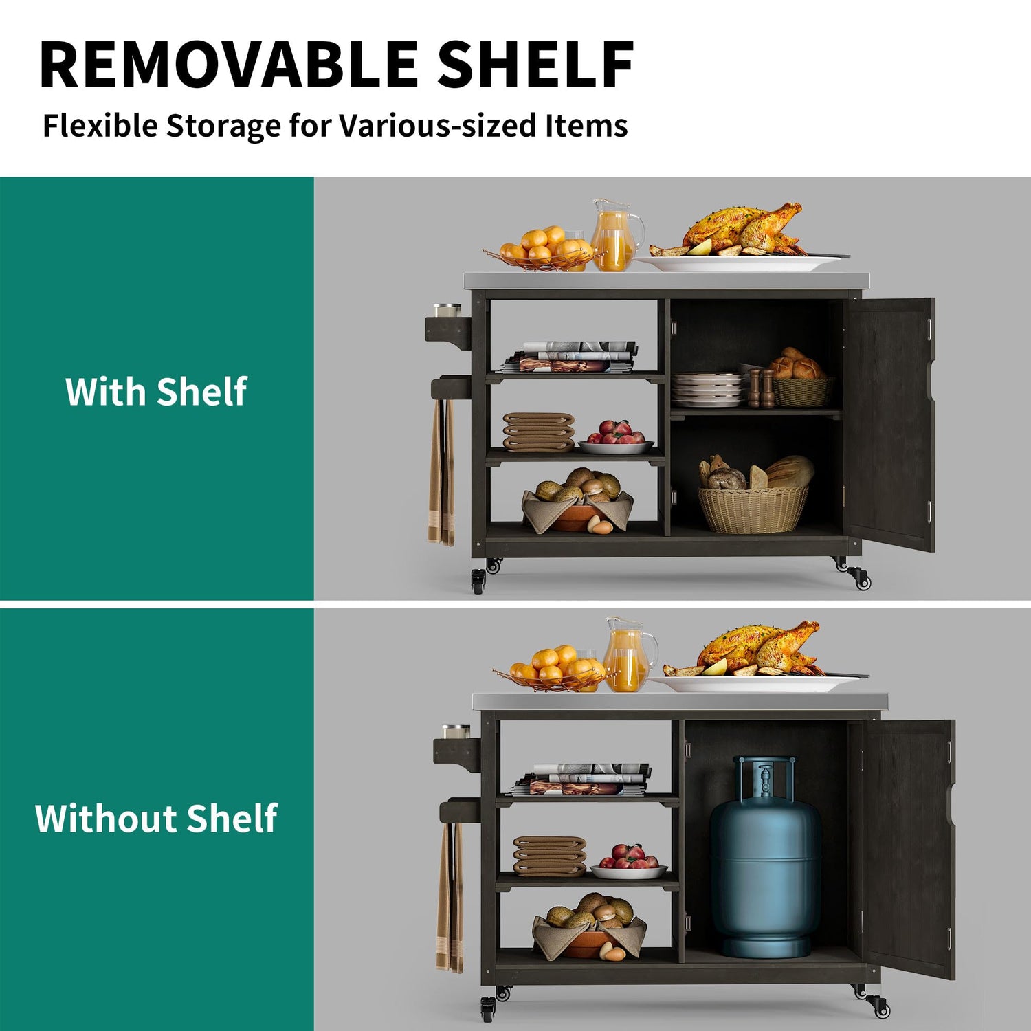 - Multipurpose Functionality: With spice racks, a towel rack, and a magnetic door design that keeps small animals out, this grill cart is a versatile solution. Use it as a kitchen island, outdoor kitchen, storage cabinet, or grill cart