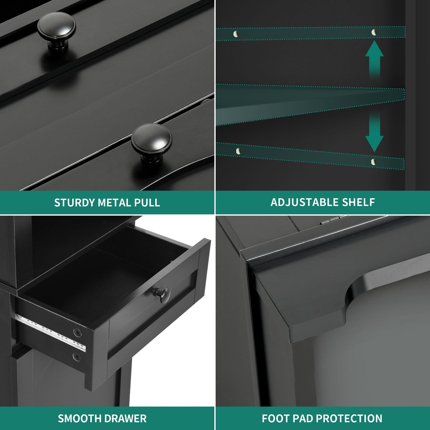 - Born as space-saver: With 2 open storage compartments, 1 drawer, and 1 concealed laundry basket, this laundry storage cabinet allows you to maximize vertical space, making for tight spaces
