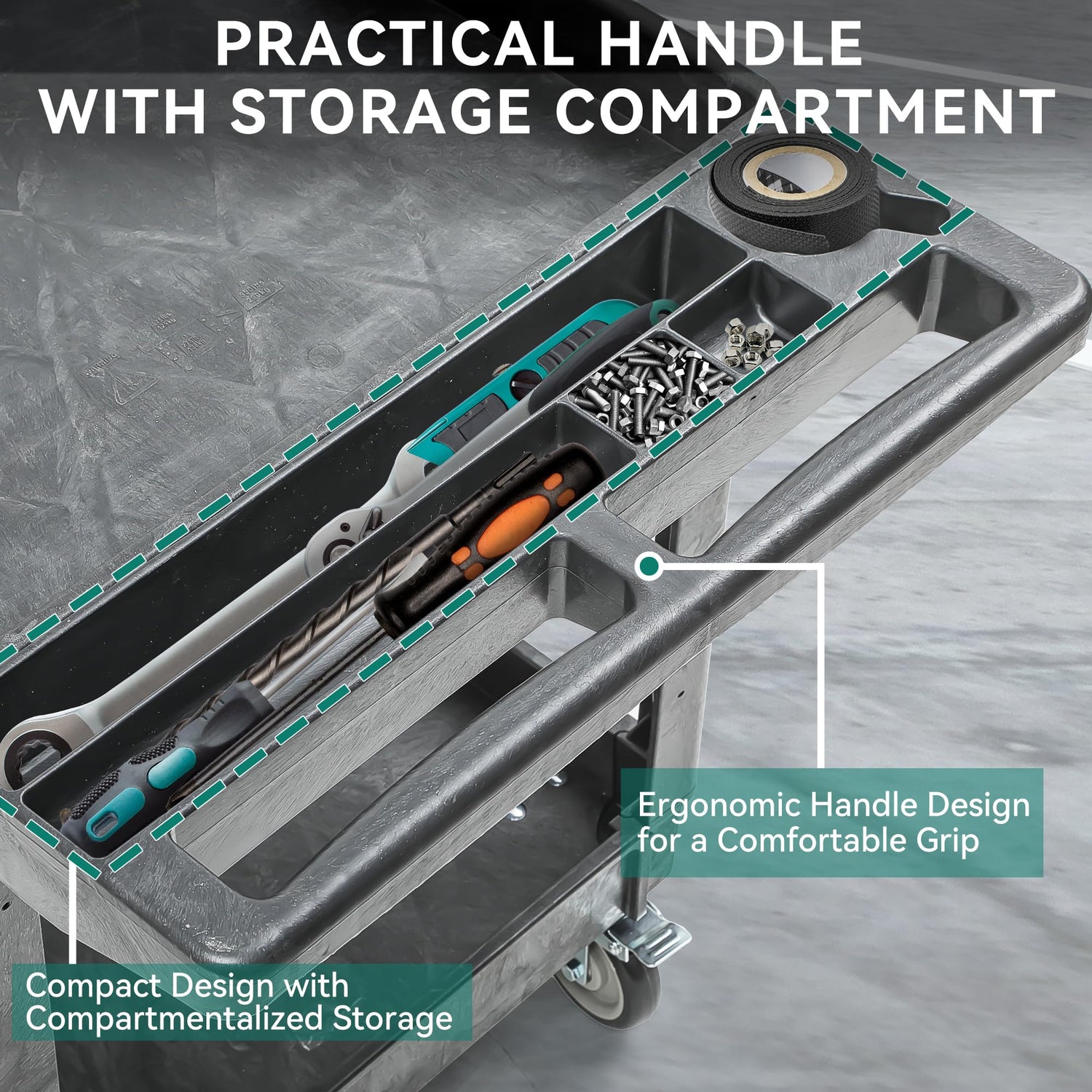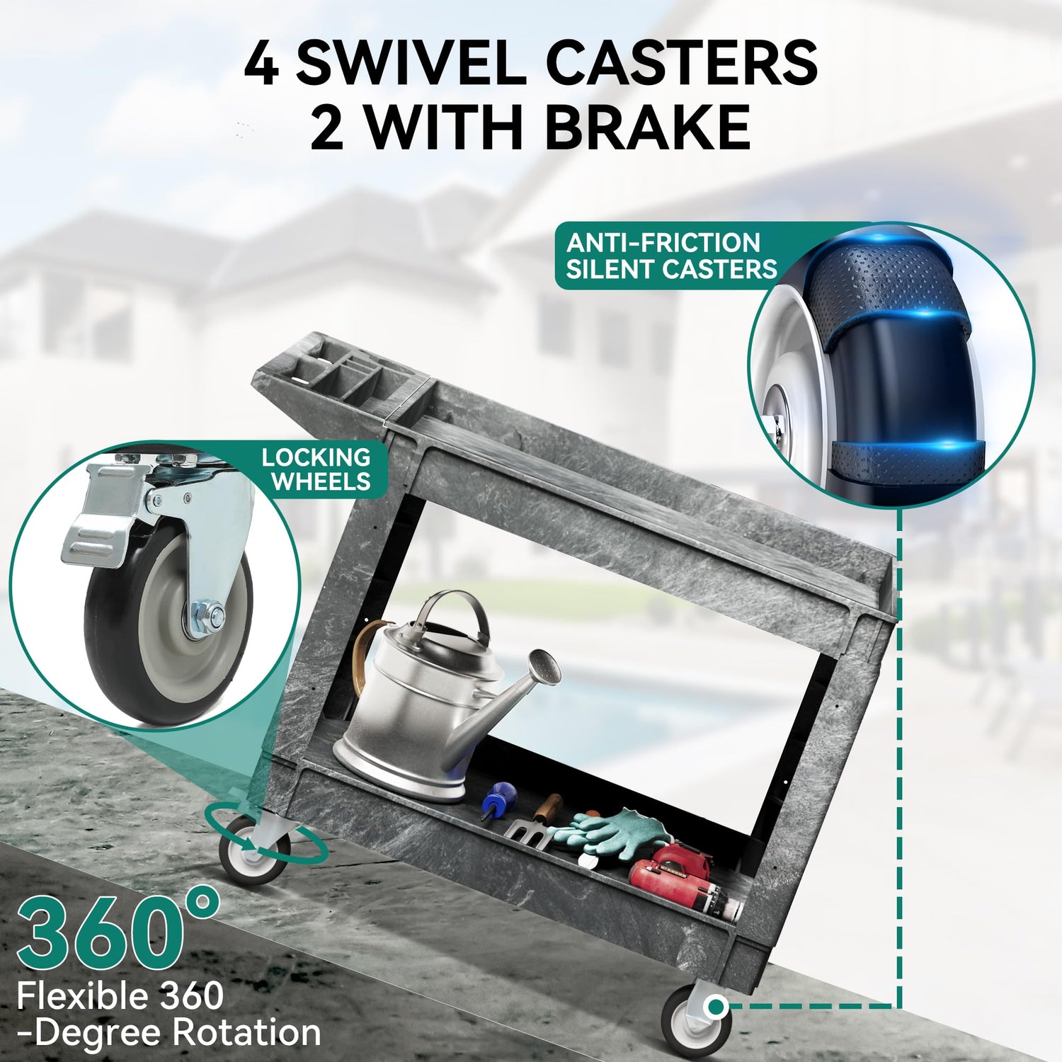 YITAHOME Utility Cart on Wheels, 550 lbs 2 Shelf Heavy Duty Rolling Cart, 45 x 25 in Plastic Service Cart Work Cart with Wheels for Warehouse Garage School & Office, Cleaning, Gray