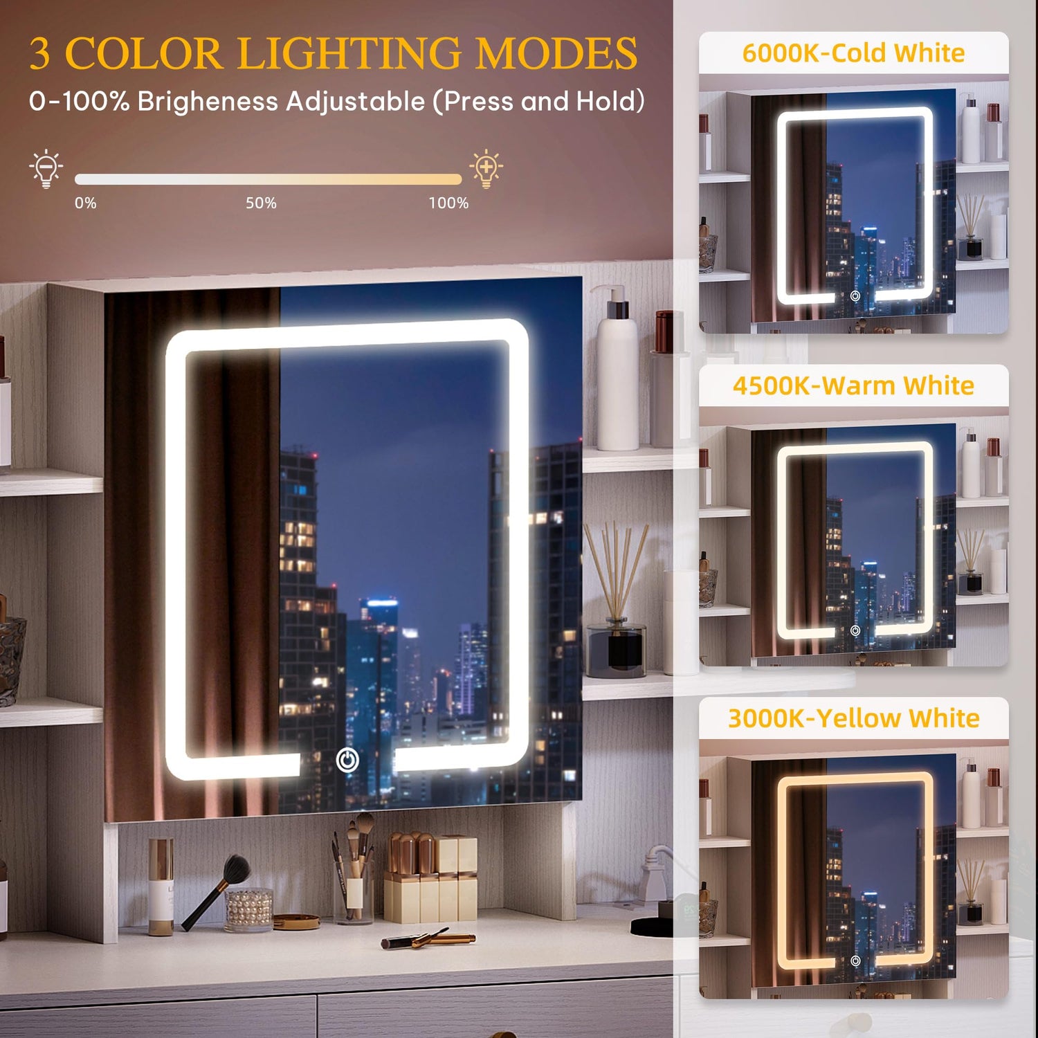 - The Mirror That Organizes & Illuminates: Our dressing table features a touch-control LED mirror with 3 lighting modes and hidden compartments behind the mirror, ideal for keeping jewelry and accessories organized and safe from prying eyes