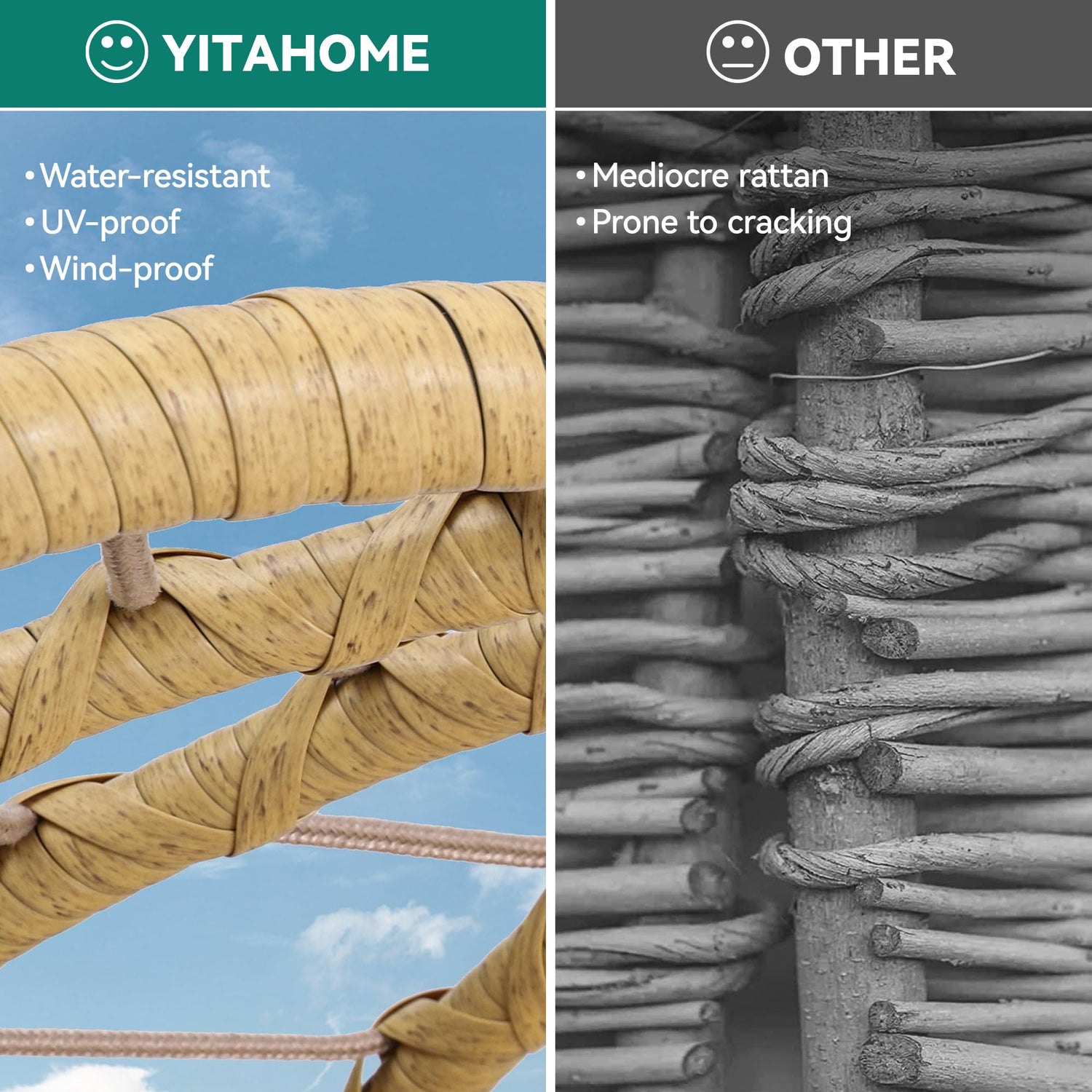 - All-Weather Resilience: Crafted with all-weather wicker rattan, this patio egg chair is designed for long-term use; It's waterproof, ensuring longevity and maintaining its elegance regardless of the weather conditions