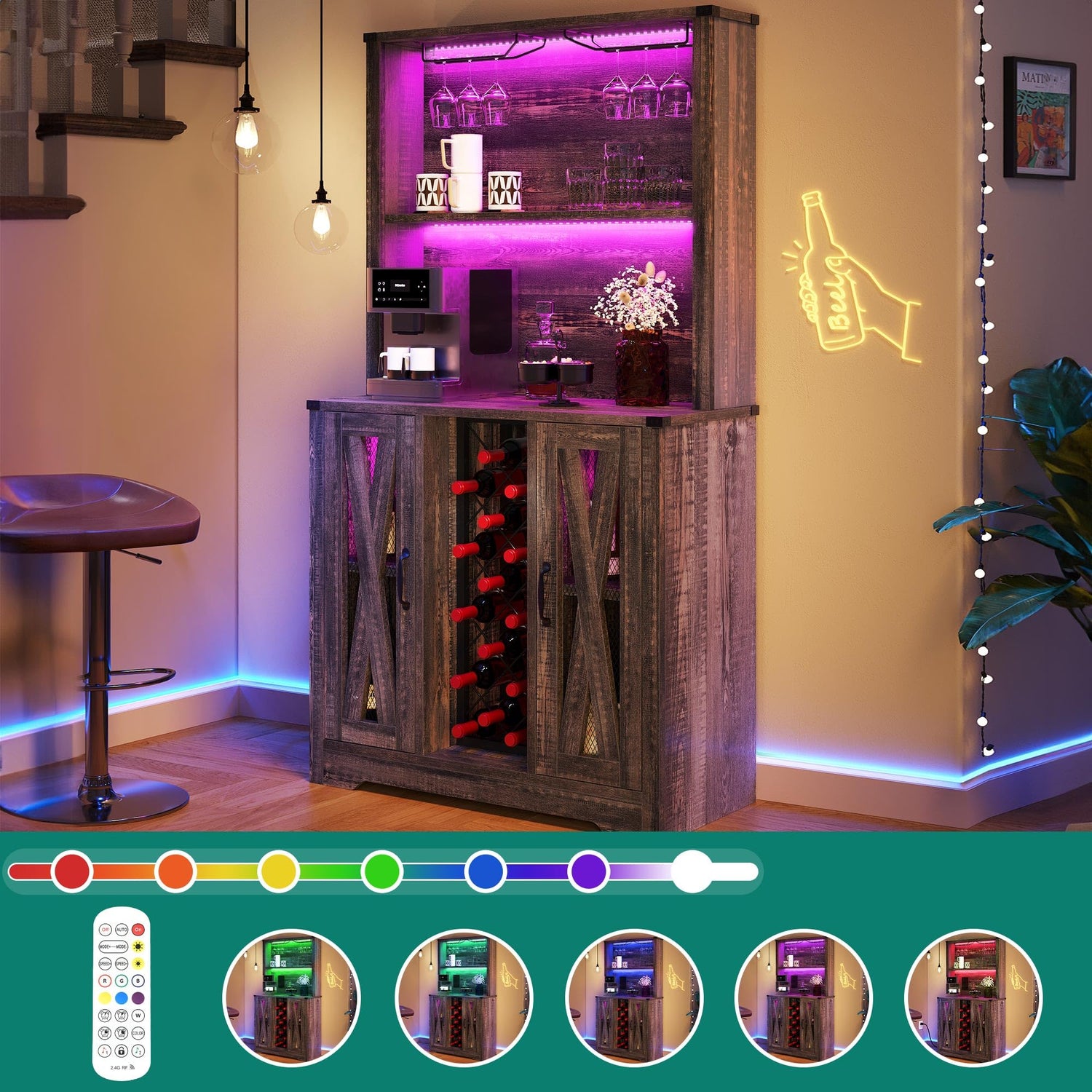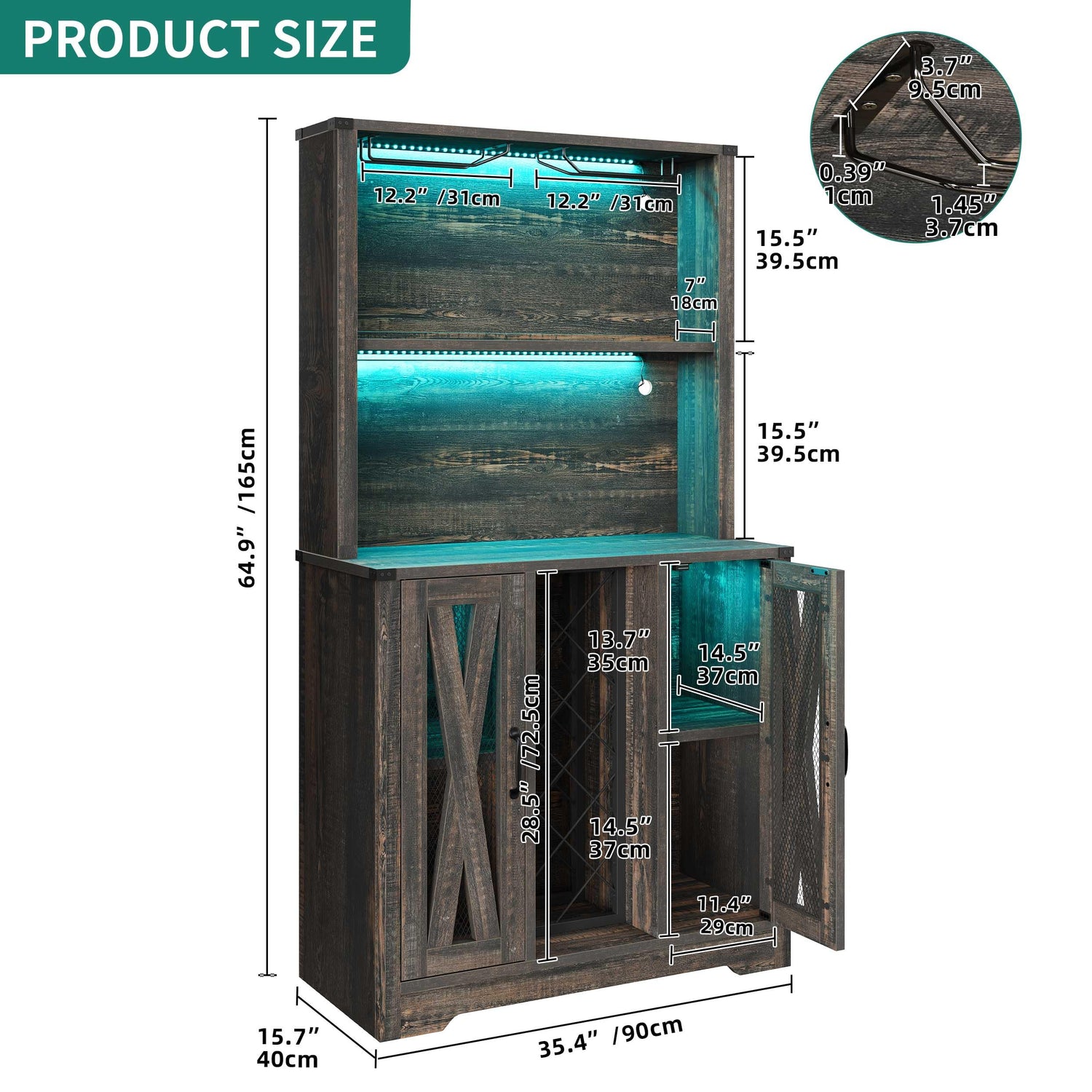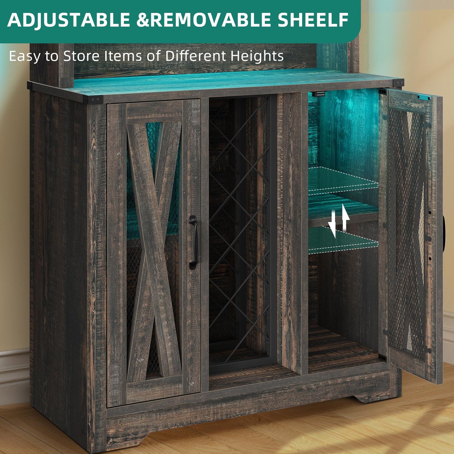 YITAHOME Wine Bar Cabinet, LED Farmhouse Liquor Cabinet Coffee Bar with Adjustable Shelves, 65 Inch Buffet Kitchen Storage Cabinet for Dinning Room, Kitchen, Living Room, Dark Rustic Oak